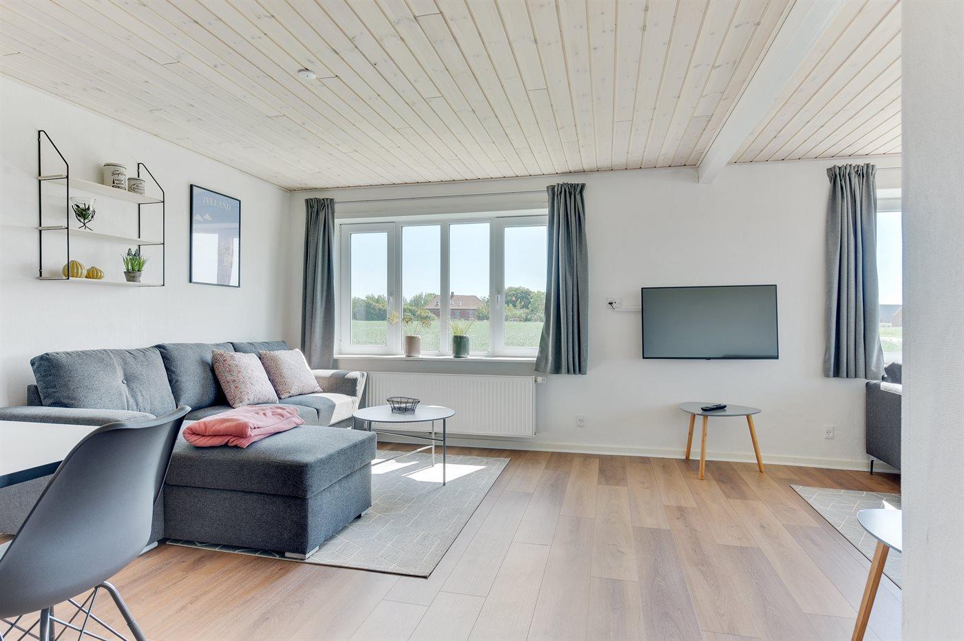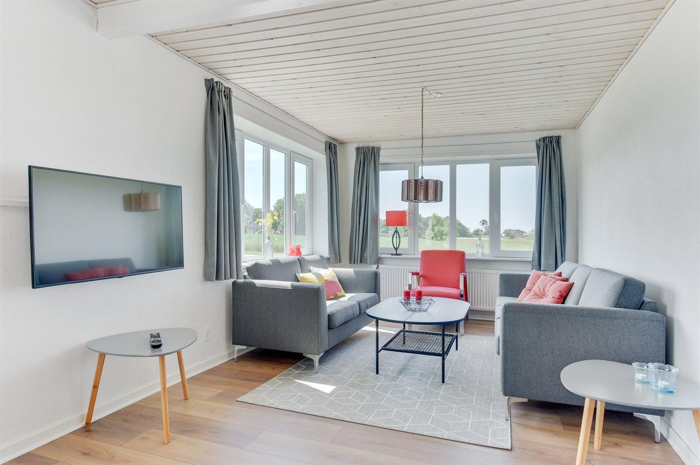 Nicht weit vom Wattenmeer entfernt liegt dieses neu renovierte Ferienhaus. Übrigens: 2 der Schlafplätze befinden sich af Schlafcouch im Wohnzimmer.