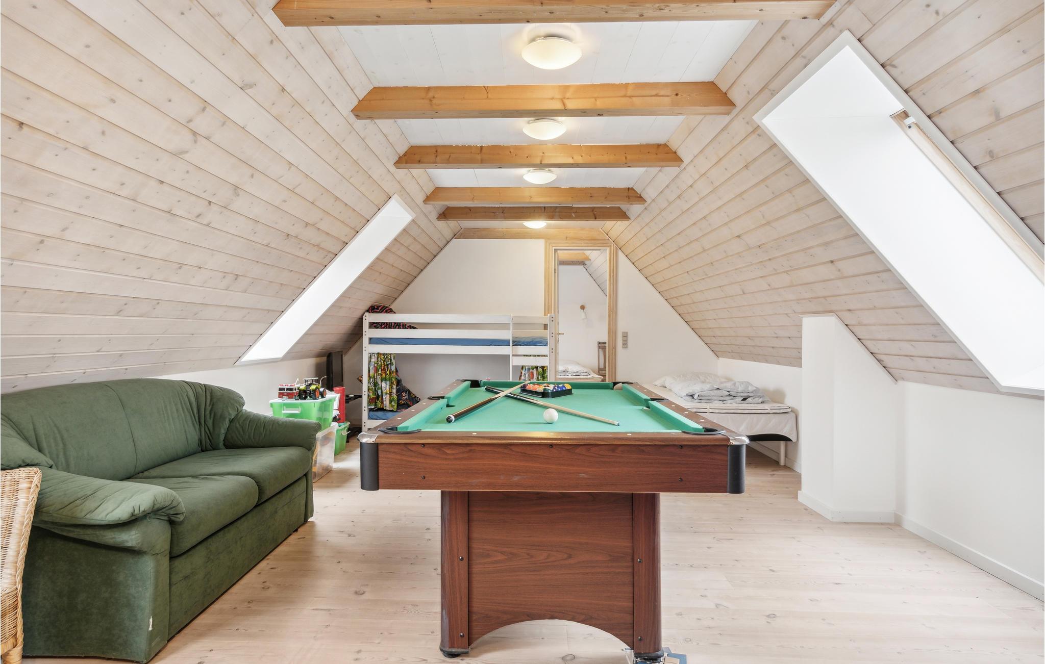 Erleben Sie den hellen, offen gestalteten Wohnbereich, der viel Platz für gemeinsame Zeit bietet. Machen Sie es sich auf den komfortablen Sofas gemütlich und genießen Sie entspannte Stunden mit Blick nach draußen. Kochen Sie in der modernen, offen integrierten Küche und nutzen Sie die großzügige Arbeitsfläche für gesellige Abende. Nehmen Sie am großen Esstisch Platz und verbringen Sie lange Mahlzeiten im Kreis Ihrer Familie. Gehen Sie ins Obergeschoss und spielen Sie ein Familien-Billardturnier. Gönnen Sie sich anschließend eine Pause im Whirlpool.