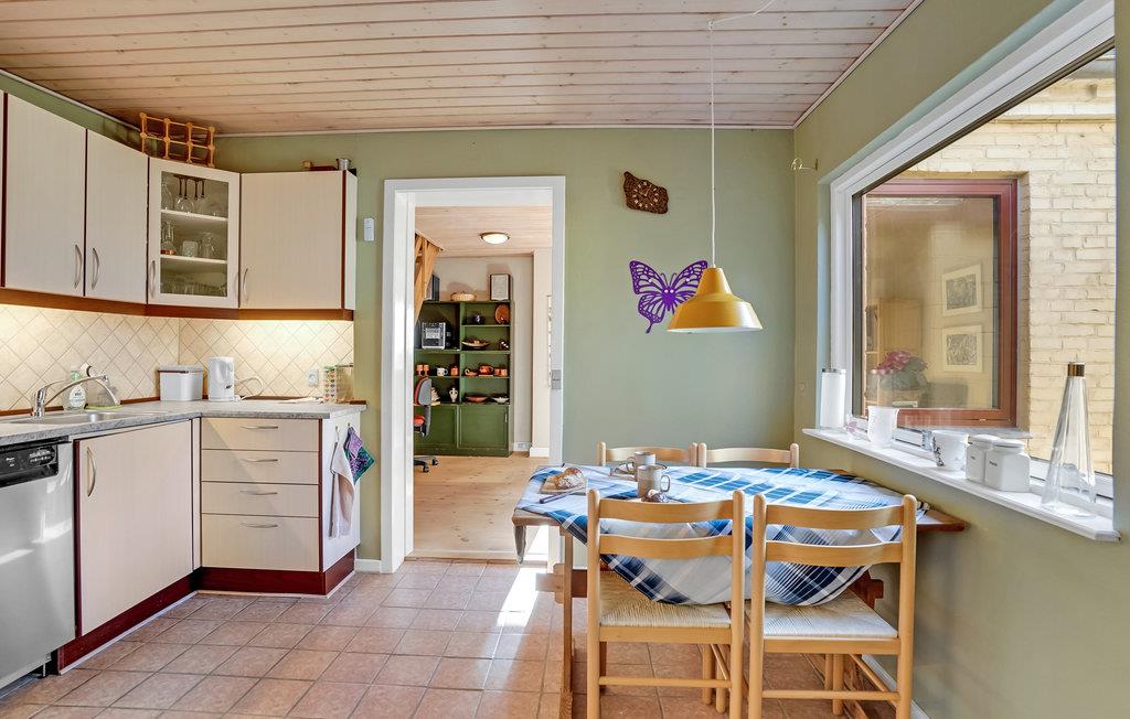 Ihr Ferienhaus in Reersnæs nahe Bandholm verbindet nostalgischen Charme mit modernen Annehmlichkeiten. Die lichtdurchfluteten Räume, die bequemen Sitzgelegenheiten und der gemütliche Wohnbereich schaffen eine einladende Atmosphäre. Bereiten Sie Ihre Mahlzeiten in der großzügigen Essküche zu, wo Sie sie auch servieren können.