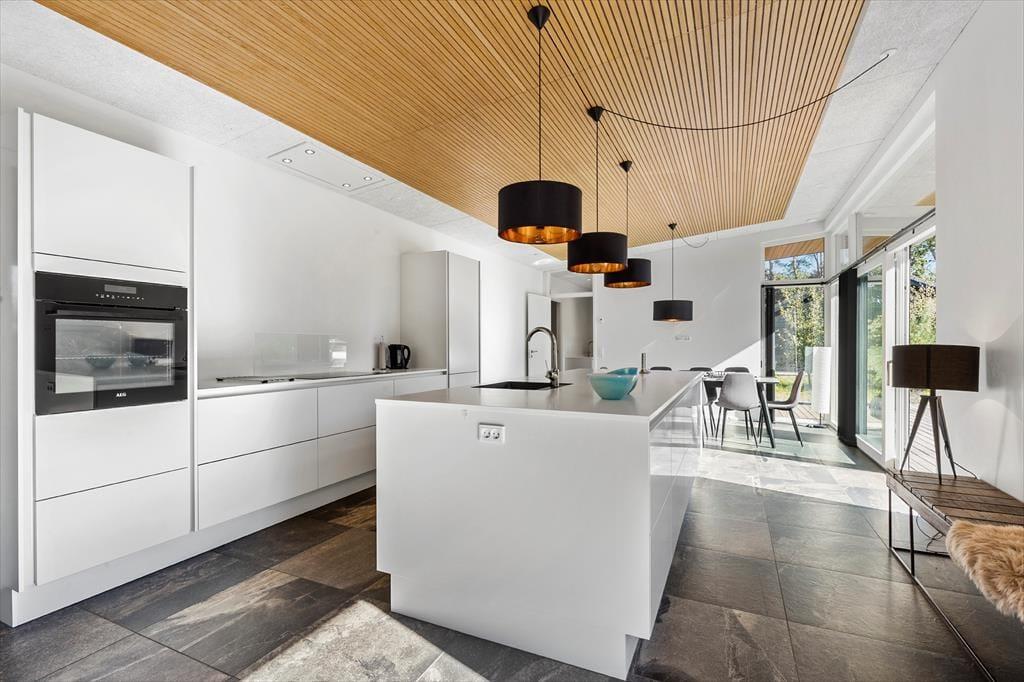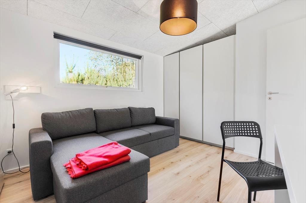 Du betrittst ein modernes und helles Ferienhaus, in dem Komfort und Qualität Hand in Hand gehen. Hier gibt es Platz für bis zu acht Personen, verteilt auf vier einladende Schlafzimmer. Die offene Küche und das Wohnzimmer laden zu gemütlichen Momenten beim Kochen, Spielen oder Entspannen ein. Nach einem langen Tag in der Natur genießt du die Wärme des Kaminofens, machst einen Saunagang oder lehnst dich einfach auf dem Sofa zurück und spürst, wie die Ruhe einkehrt. Mit zwei Badezimmern wird der Alltag leicht – auch dann, wenn ihr viele seid.