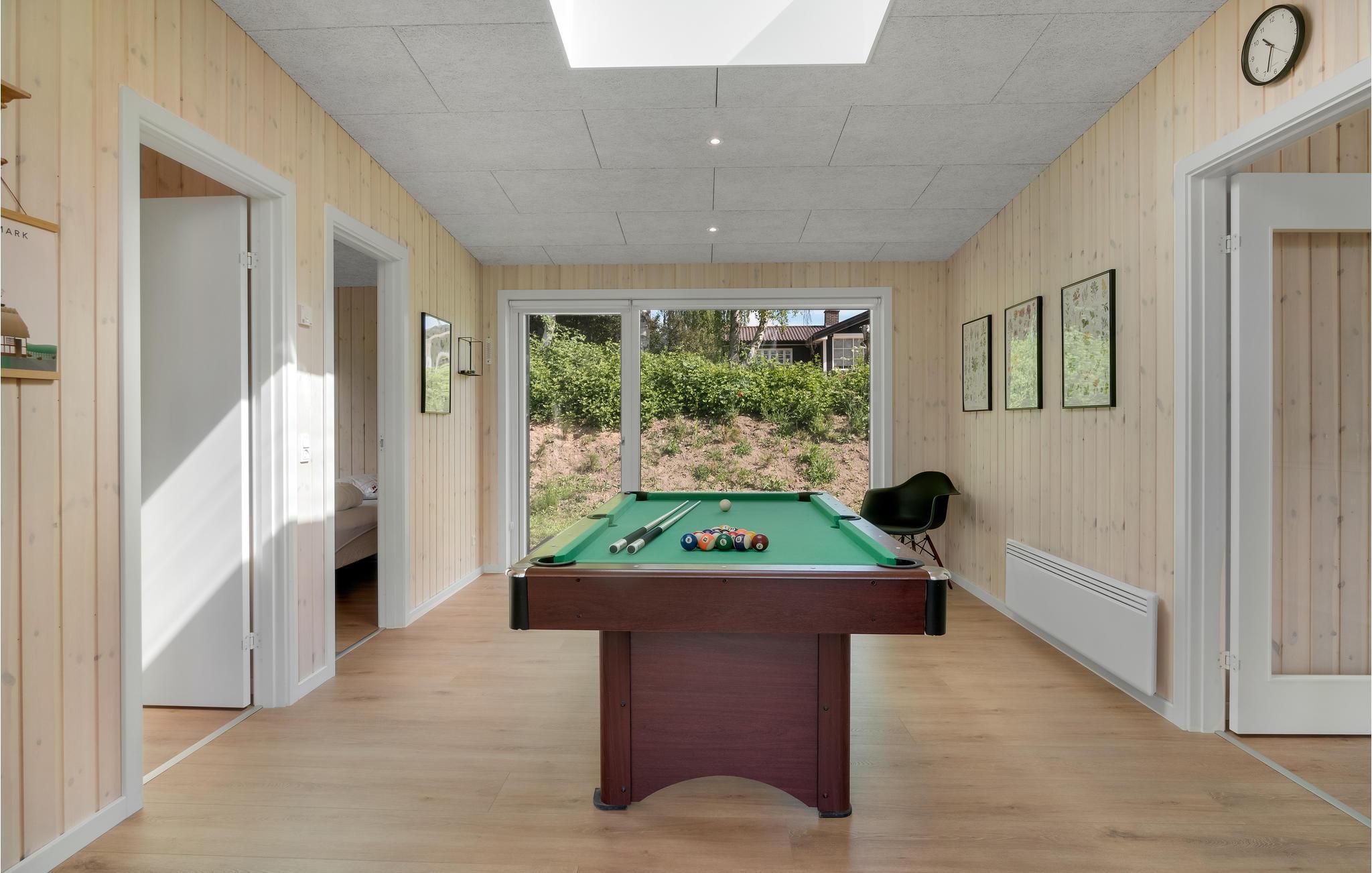 Das moderne Haus heißt Sie mit gemütlichen und lichtdurchfluteten Wohn- und Schlafräumen willkommen. Kommen Sie an und entspannen Sie sich auf den Sofas im Wohnraum, wenn es Sie etwas fröstelt, können Sie dabei ein wärmendes Kaminfeuer anschüren oder in der Küche einen warmen Tee kochen.Verbringen Sie unterhaltsame Abende beim Spielen, egal ob beim Billard oder Gesellschaftsspielen. Sollten Sie sich etwas mehr Ruhe wünschen, können Sie sich in der Sauna ausschwitzen.