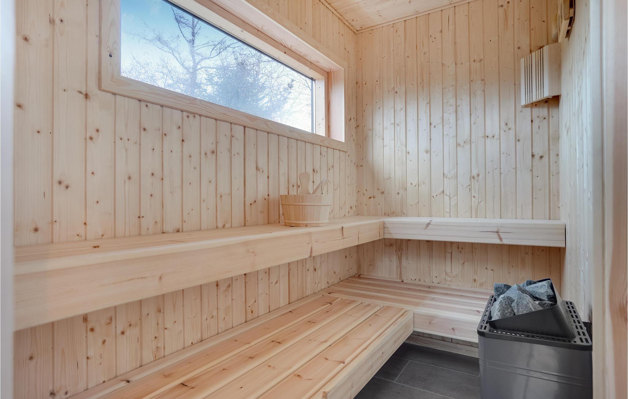 Modernes Ferienhaus nahe Begtrupvig Strand mit Sauna, Kamin und Aktivitätsraum für entspannte Familienurlaube.