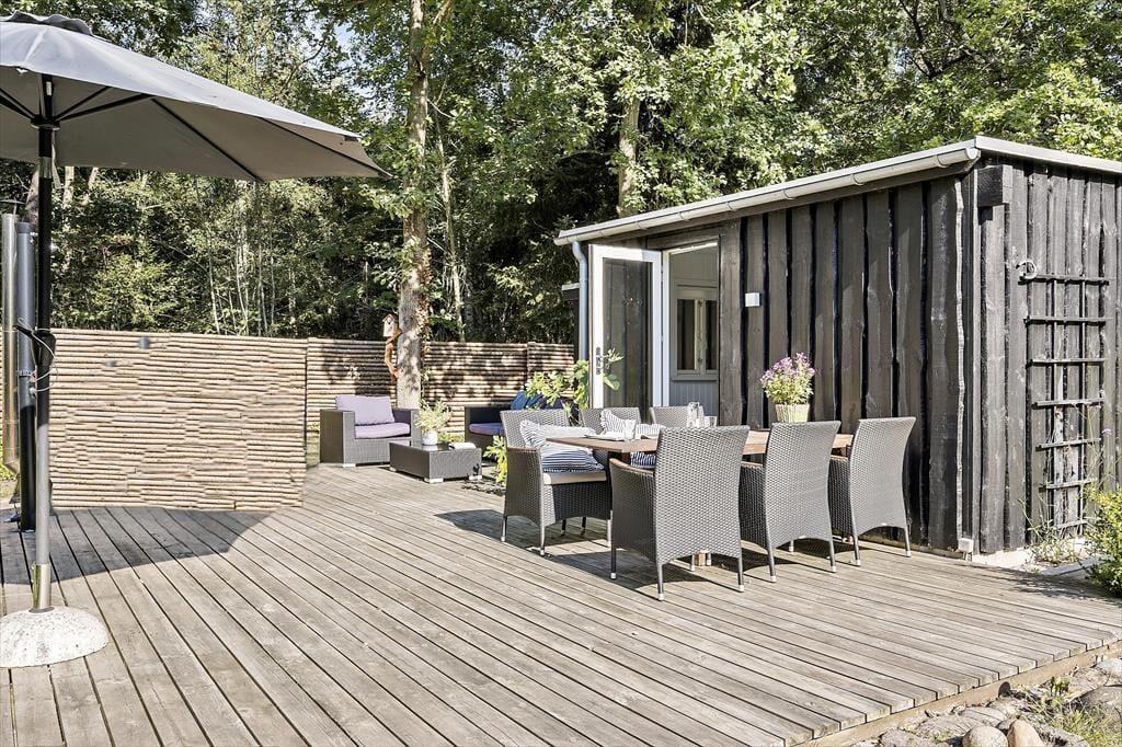 Genieße das Leben im Freien: Das Ferienhaus liegt völlig ungestört auf einem 1.254 m² großen, offenen und malerischen Grundstück, von dem aus ihr durch die Bäume auf das Wasser blicken könnt. Zudem stehen euch mehrere Terrassen zur Verfügung, darunter ein tolles Lounge-Bereich mit einem Whirlpool und einer Außendusche beim Annex sowie eine überdachte Terrasse nach Osten. Das Grundstück ist komplett eingezäunt, was es perfekt macht, um euren Hund mitzubringen. Am Haus findet ihr Gartenmöbel, Liegestühle sowie einen Gasgrill.