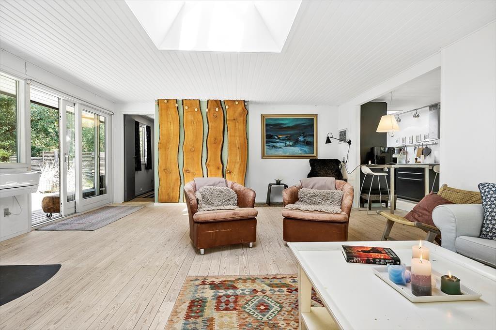Willkommen in deinem Ferienhaus: Drinnen erwartet euch ein prachtvoller Küchen-Essbereich mit Oberlichtern und alten Kiefernholzböden, die fast überall wiederkehren. In der funktionalen Küche findet ihr alles, was ihr zum Kochen und Essen benötigt, einschließlich eines eingebauten Ofens, einer Induktionskochplatte, einem Kühlschrank und einer Geschirrspülmaschine. Im großen, gemütlichen und geräumigen Wohnzimmer, das ebenfalls mit Oberlichtern und einem Kaminofen geschmückt ist, herrscht eine unglaublich angenehme Atmosphäre. Hier gibt es einen großen Esstisch, bequeme Sofas und einladende Sessel. Das Badezimmer ist mit einer Dusche, Fußbodenheizung, Waschmaschine und Trockner ausgestattet. Ein Schlafzimmer mit eigenem zusätzlichen Badezimmer sowie zwei weitere Schlafzimmer sind ebenfalls vorhanden. Außerdem gibt es ein Annex mit ein Doppelbett und einem separaten Badezimmer.