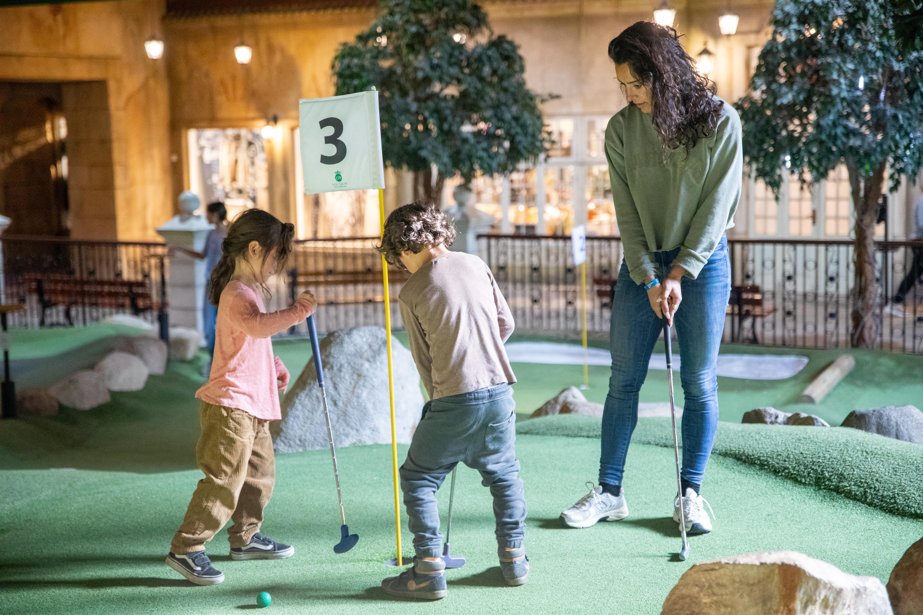 Laden Sie die Familie zu einem Wettkampf auf der Minigolfbahn oder im Bowlingcenter ein.
