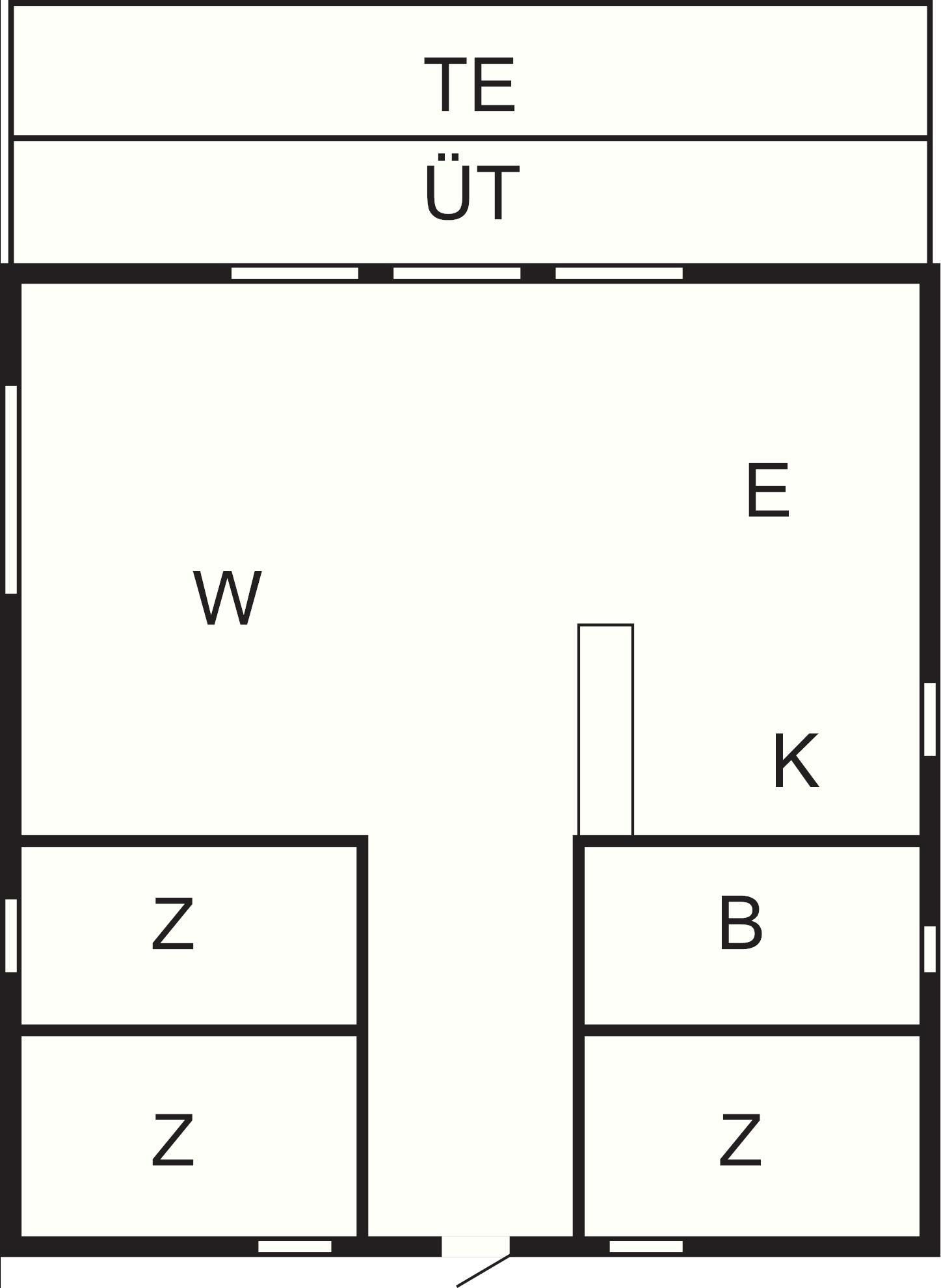 Off. Küche: E-Herd, Kühlschr. m. Gefrierfach, Abzugsh., Kaffeem.