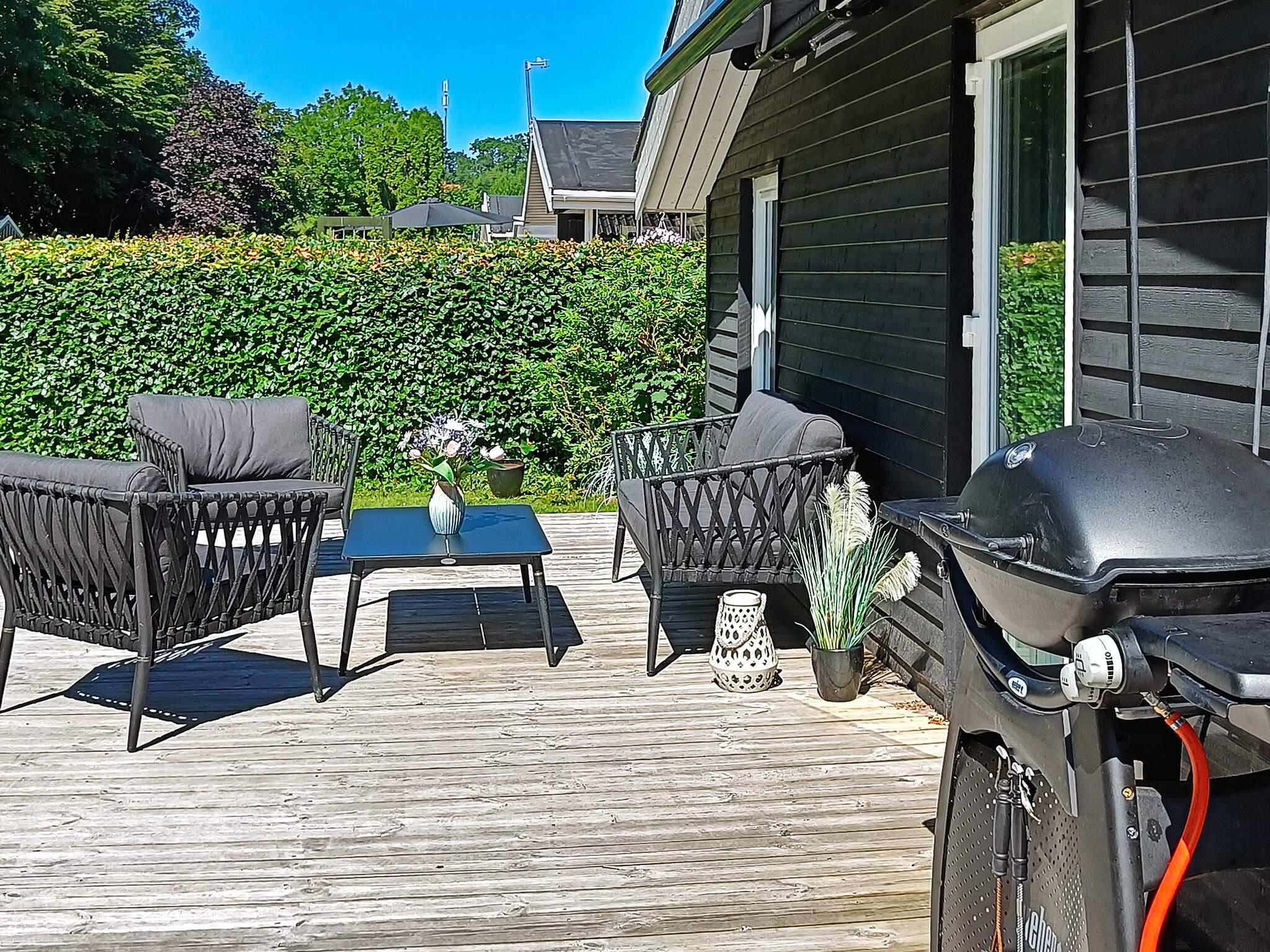 Das Ferienhaus ist fast komplett von Terrassenflächen umgeben, auf denen Sie die Natur genießen können, grillen und die Kinder spielen können, während man zugleich Blick auf das Wasser genießen kann. Auf der Terrasse, die nach Süd/West ausgerichtet ist, können Sie sich in der schönen Sitzgarnitur entspannen und wenn der Tau fällt, die elektrische Markise ausfahren oder einfach in den Badezuber springen, der mit Holz beheizt wird. Es gibt eine Schaukel und in der Umgebung finden Sie mehrere Spiel- und Bolzplätze.