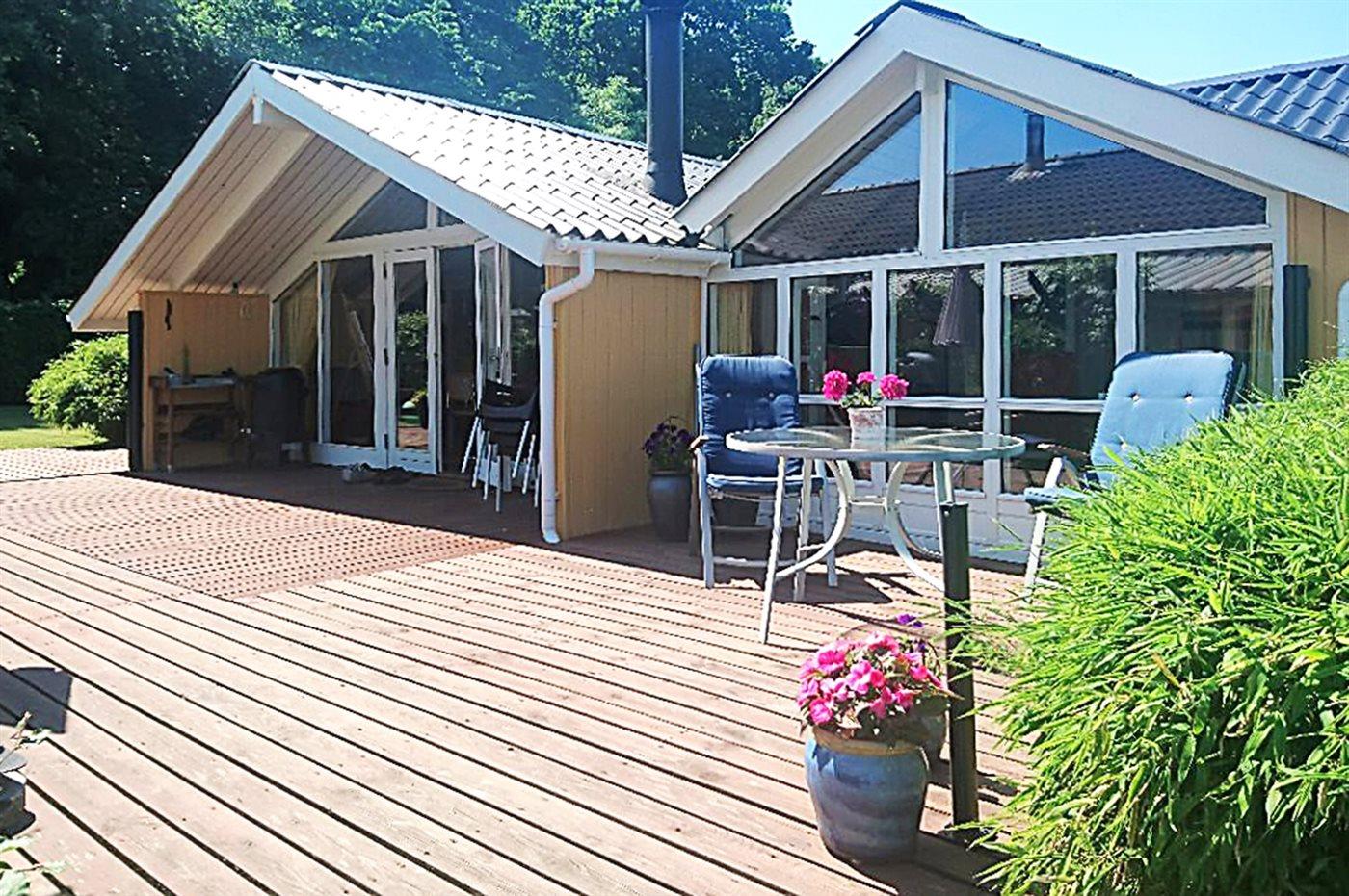 Ein gepflegtes Ferienhaus mit einer herrlichen Aussicht über den kleinen Belt sowohl vom Haus als auch vom Grundstück. Das Haus liegt in einer Sackgasse in naturschöner Umgebung nah am Wald und einem kinderfreundlichen Strand.