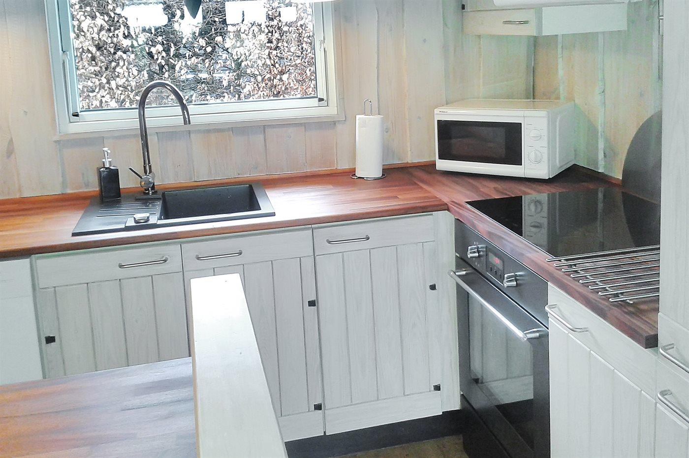 Die Küche ist mit Kühlschrank ausgestattet. Außerdem gibt es 4 Induktions-Kochzonen, Umluftofen, Mikrowelle sowie Geschirrspüler.