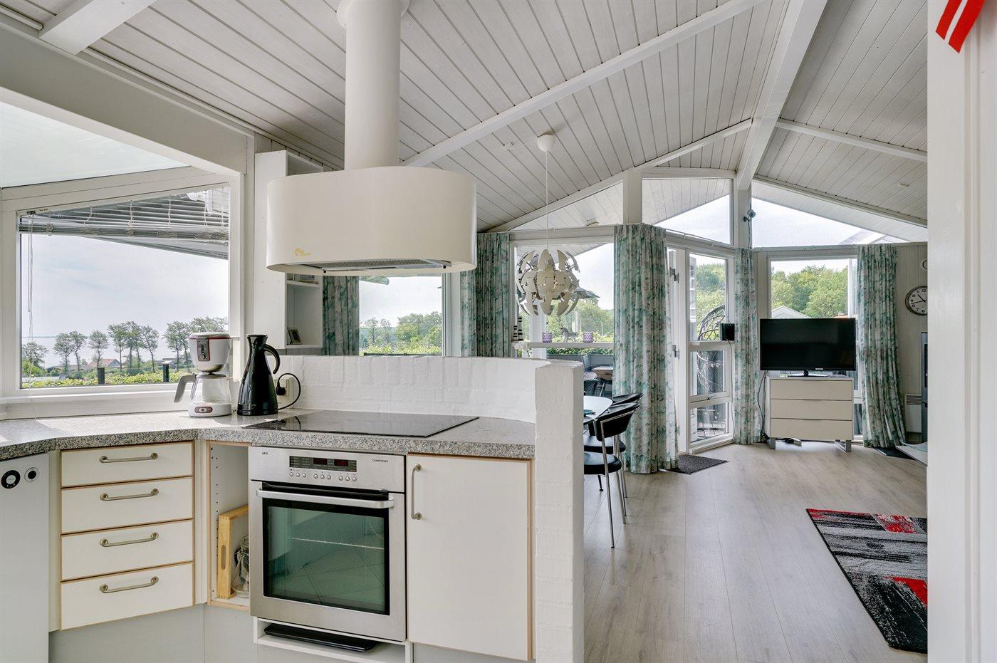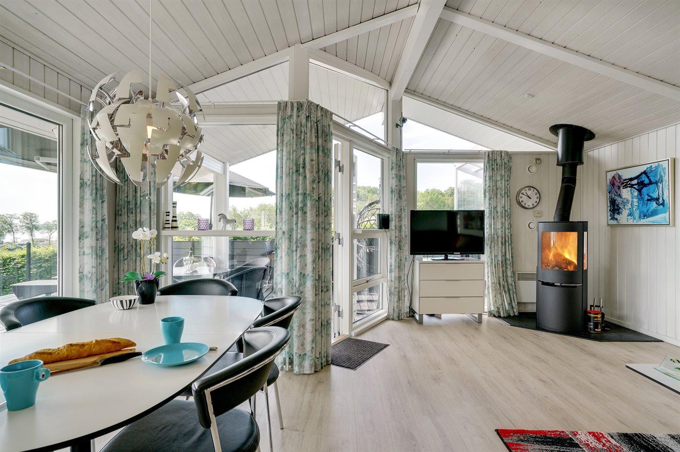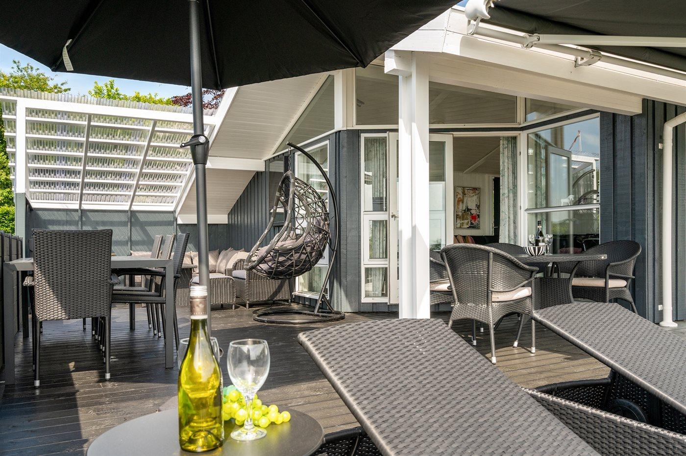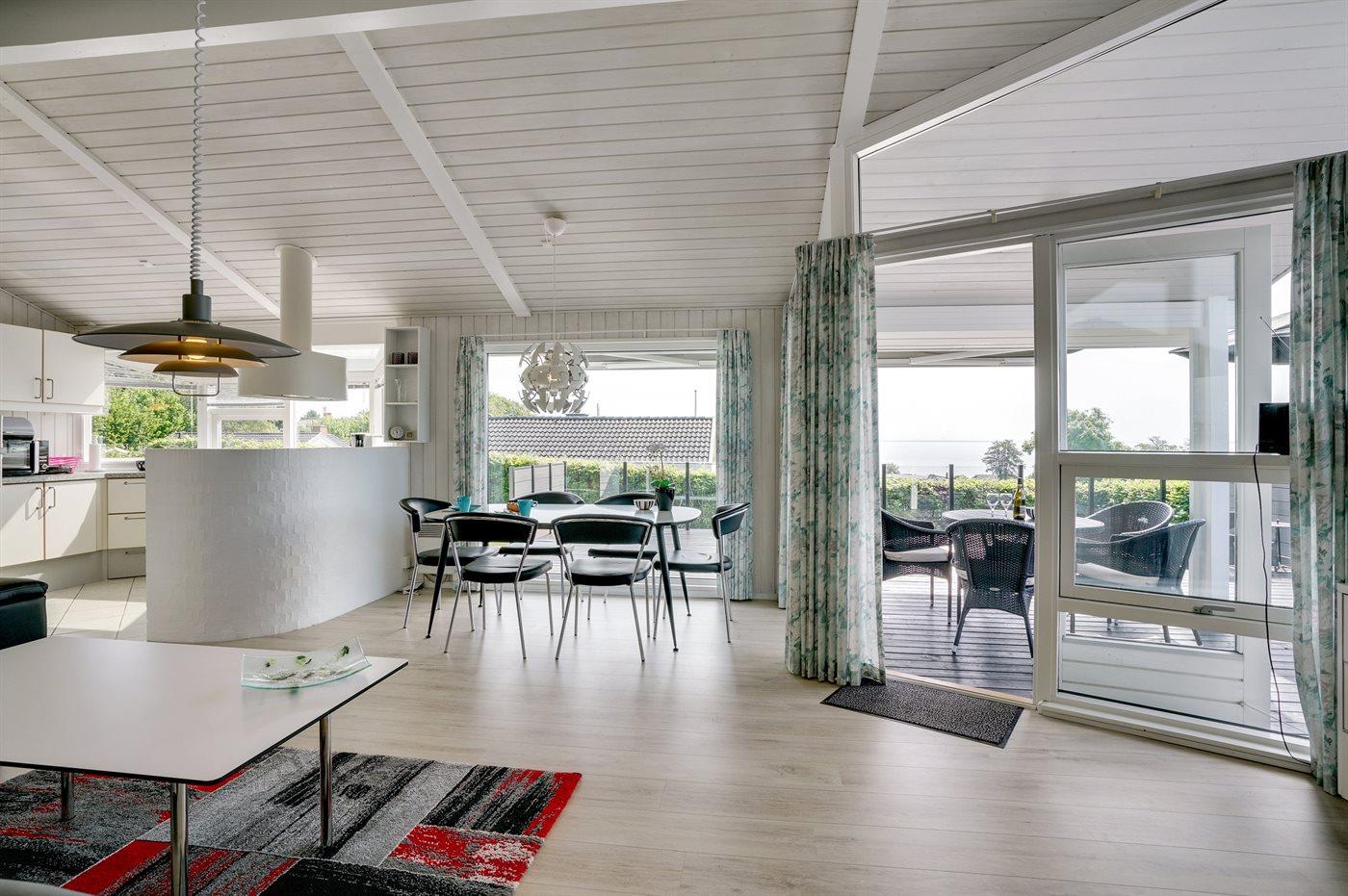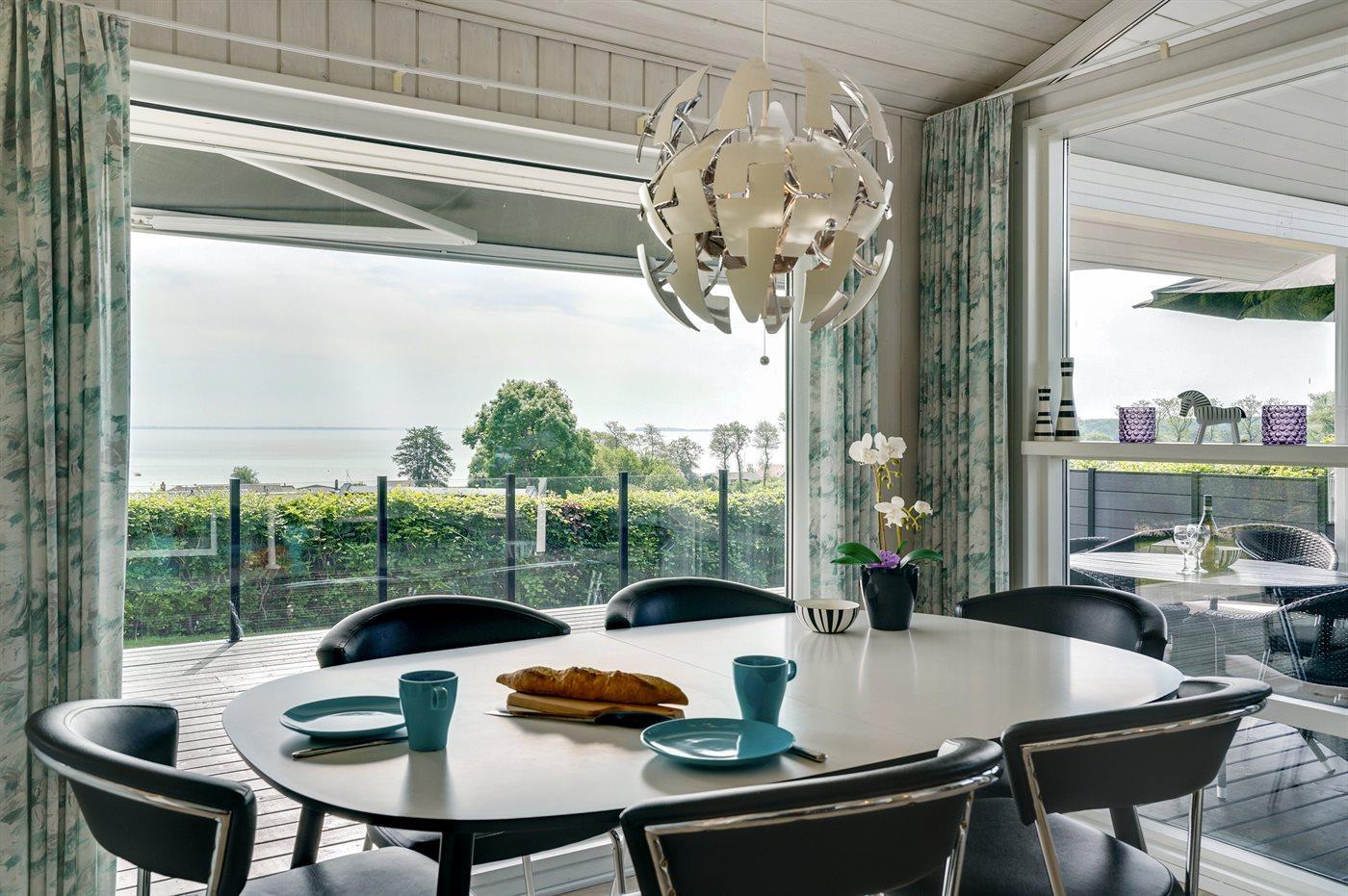 Schönes Ferienhaus auf einem tollen Gartengrundstück in nur 100 Metern Entfernung vom Sandstrand gelegen. Vom Haus und Grundstück aus haben Sie einen tollen Panoramablick aufs Wasser.