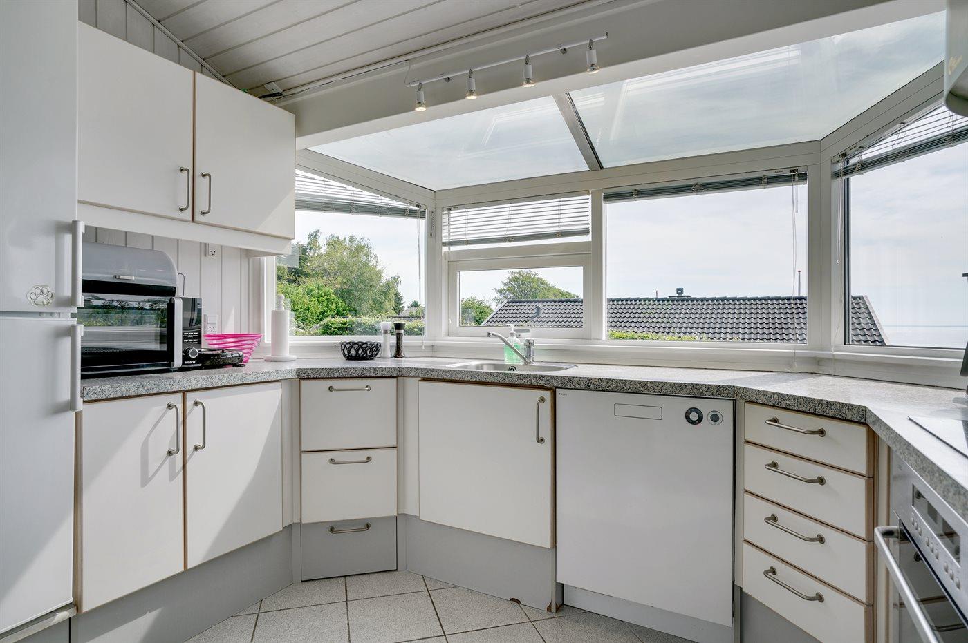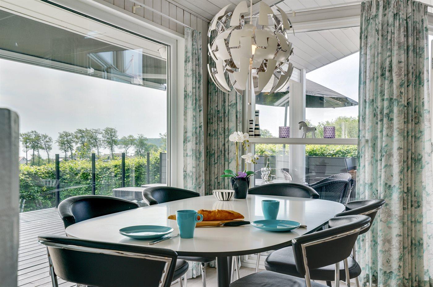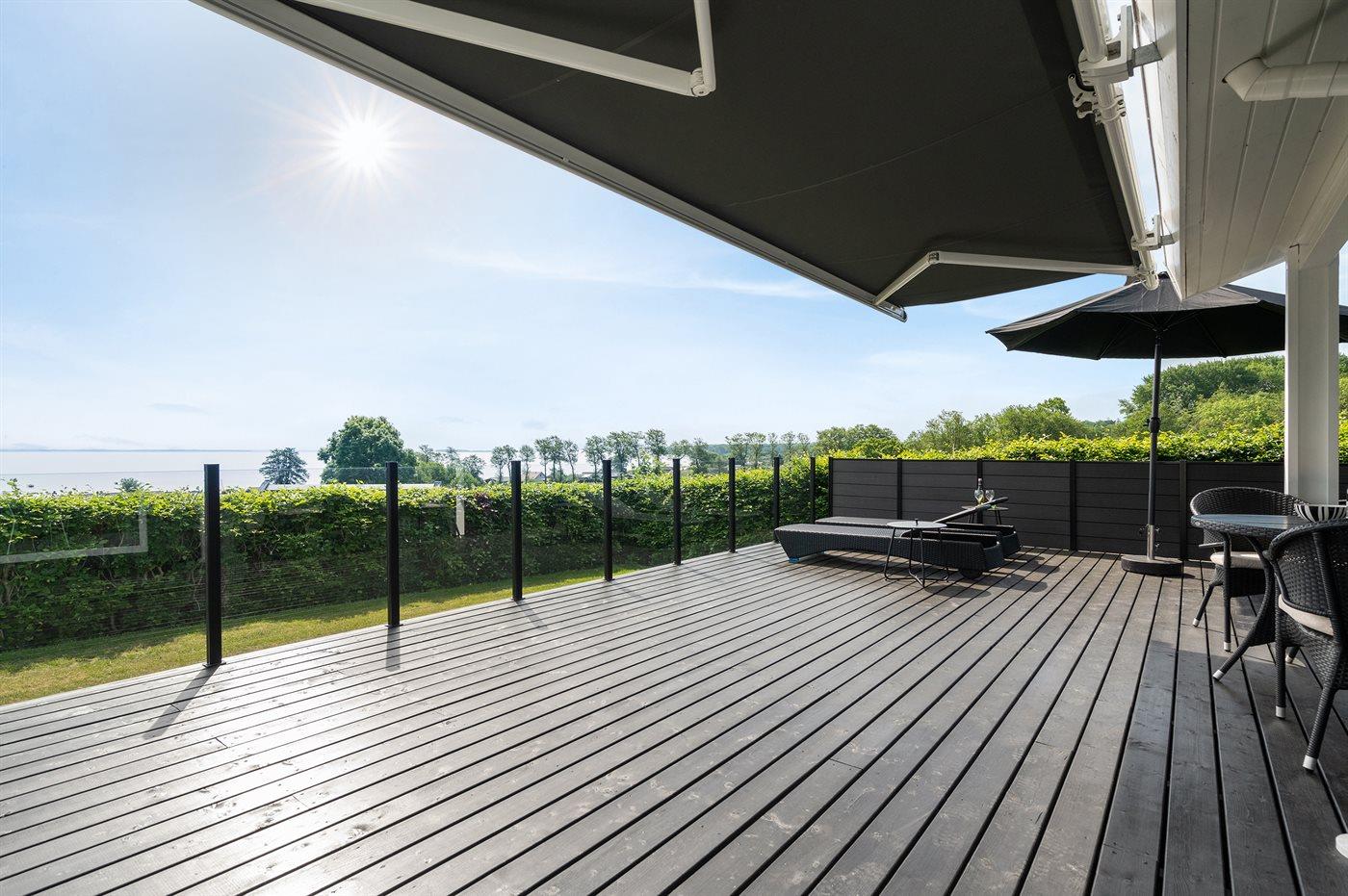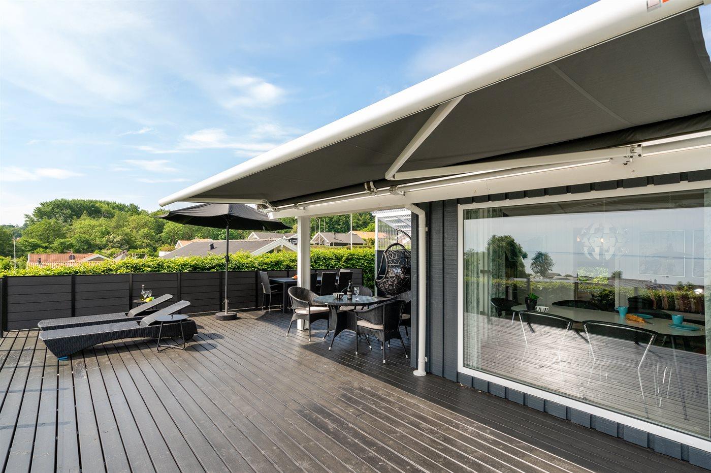 Schönes Ferienhaus auf einem tollen Gartengrundstück in nur 100 Metern Entfernung vom Sandstrand gelegen. Vom Haus und Grundstück aus haben Sie einen tollen Panoramablick aufs Wasser.