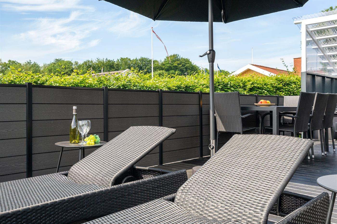 Die Ferienunterkunft liegt auf einem 458 m² großen Gartengrundstück. Die Entfernung zum Meer beträgt 250 m. Es gibt einen Badesteg in der Nähe. Die nächste Einkaufsmöglichkeit liegt 200 m entfernt. Es steht ein 80 m² Terrassenareal zur Verfügung. Außerdem gibt es 23 m² überdachte Terrasse. Es steht ein Grill zur Verfügung. Parkplatz auf dem Grundstück.