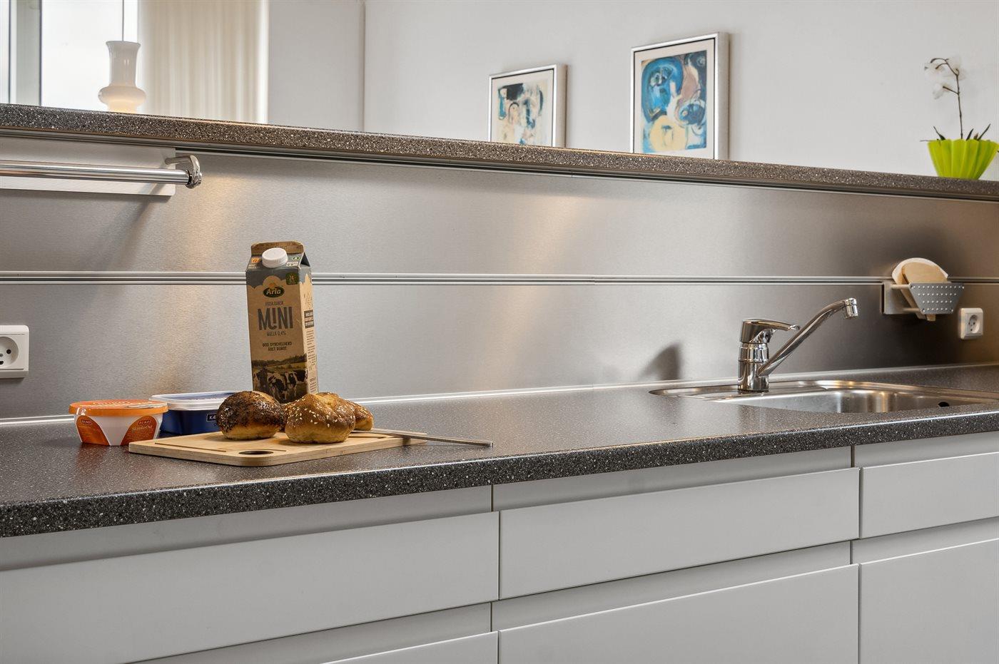 Die Küche ist mit 2 Kühlschränke ausgestattet . Außerdem gibt es 4 Keramik-Kochfelder, Umluftofen, Mikrowelle sowie Geschirrspüler.