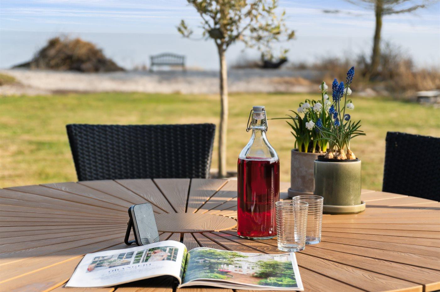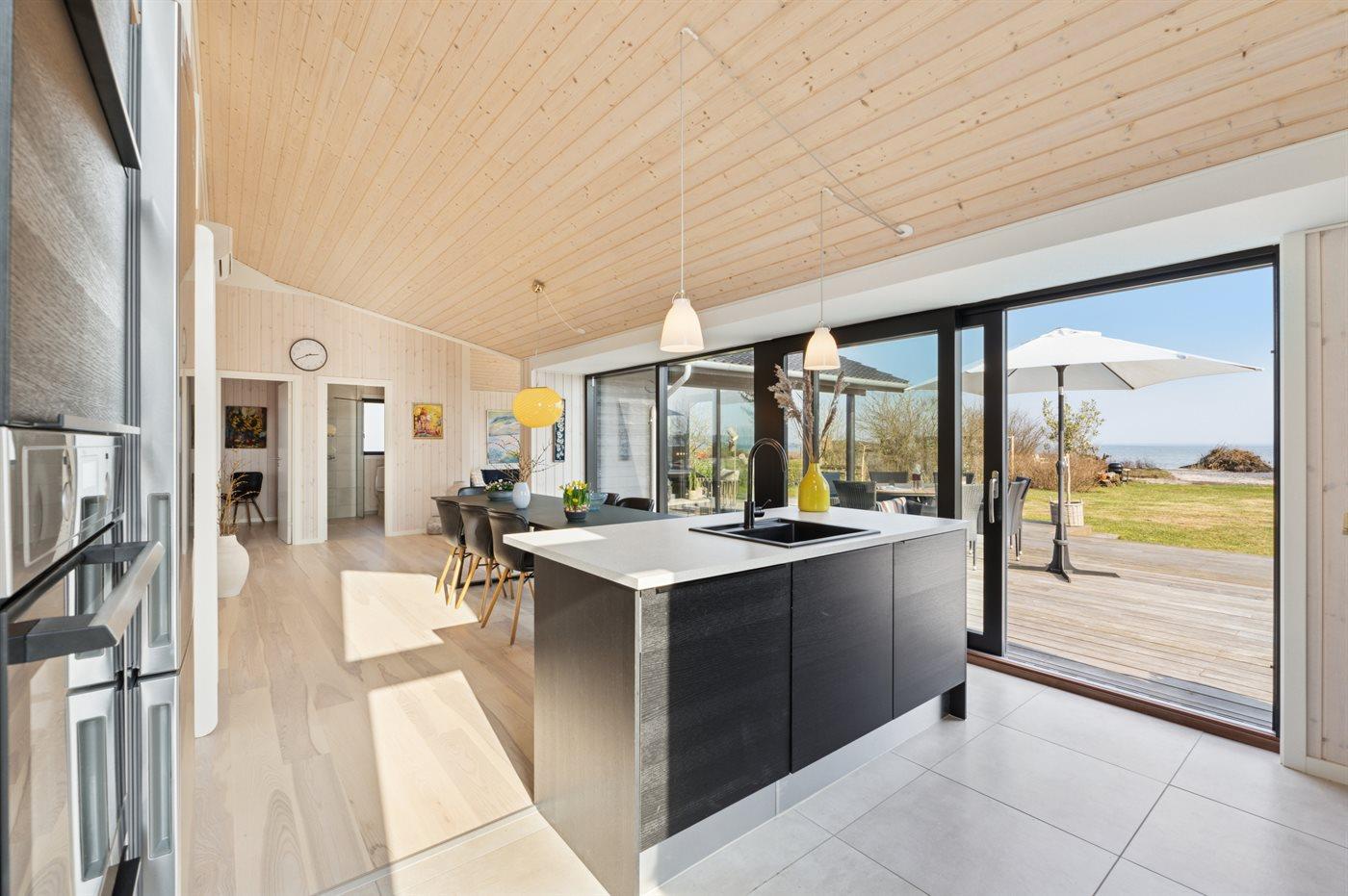 Den herrlichen und beeindruckende Blick auf das Wasser kann man sowohl vom Wohnzimmer als auch vom Küchen-Wohnbereich aus genießen. Verbringt Stunden im Freien auf der großen, teilweise überdachten Terrasse, wo man mit einem guten Buch oder einer Mahlzeit im im Freien entspannen und gleichzeitig dem Rauschen des Meeres lauschen kann.