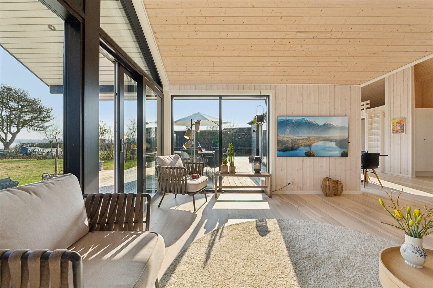 Modernes Ferienhaus in Bjert mit Meerblick und direktem Zugang zum kinderfreundlichen Strand.
