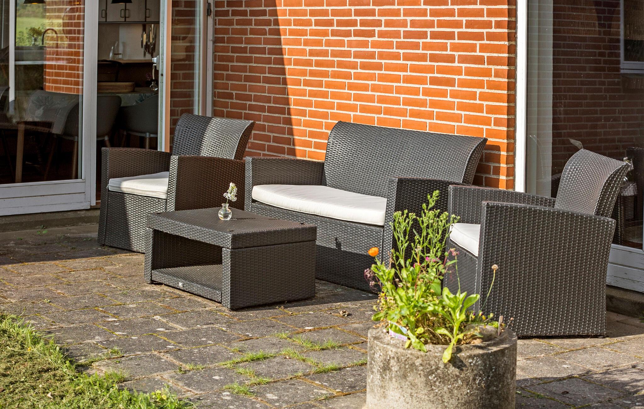 Die weitläufige Terrasse ist der ideale Ort, um die frische Luft zu genießen. Entspannen Sie in der Sonne oder veranstalten Sie einen Grillabend. Der gepflegte Garten bietet Platz für verschiedenste Aktivitäten. Ihre Kleinen werden sich über die Schaukel und das kleine Spielhaus freuen. Abends kommt die ganze Familie an der gemütlichen Feuerstelle zu Stockbrot und Marshmallows zusammen.