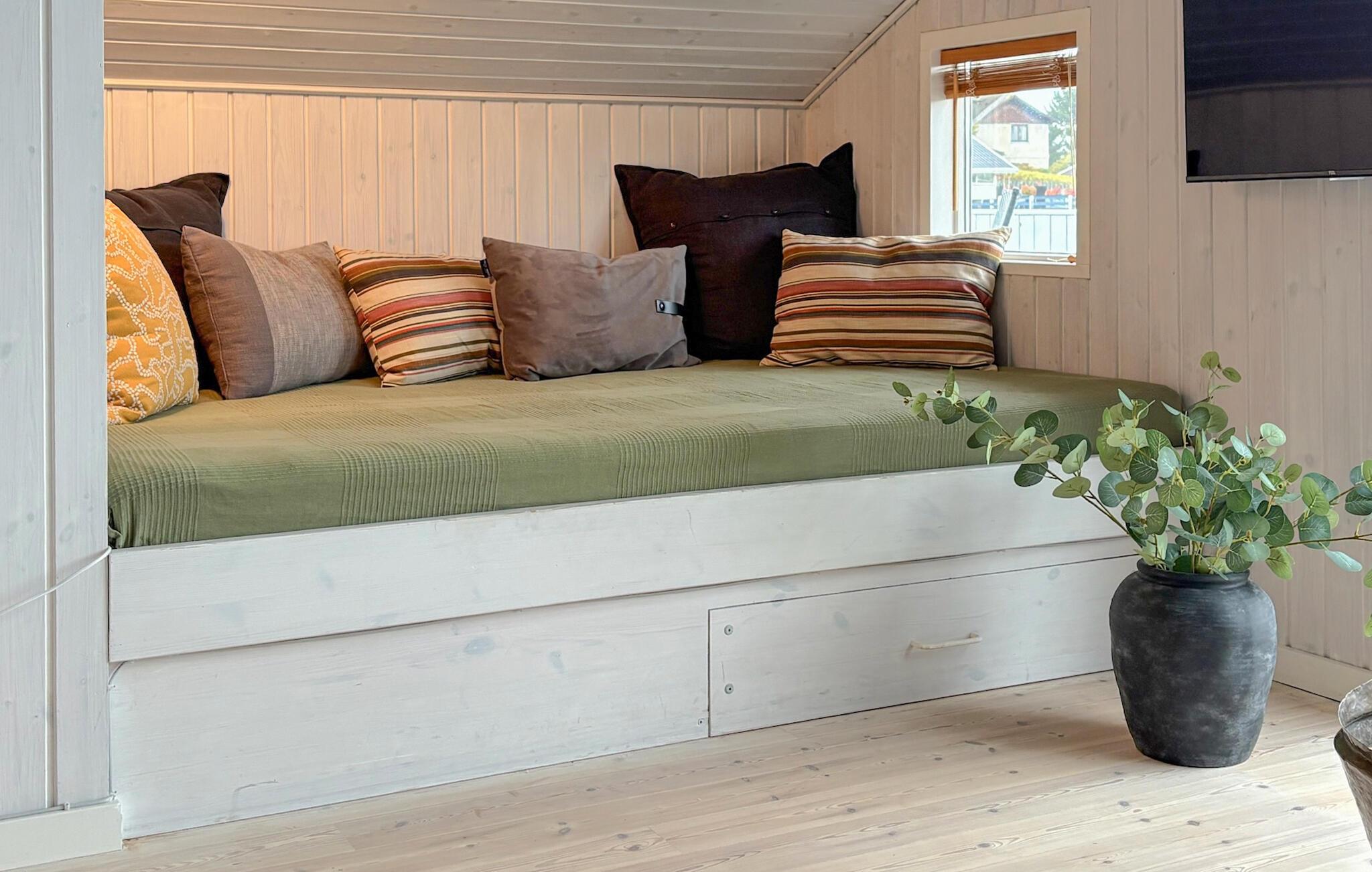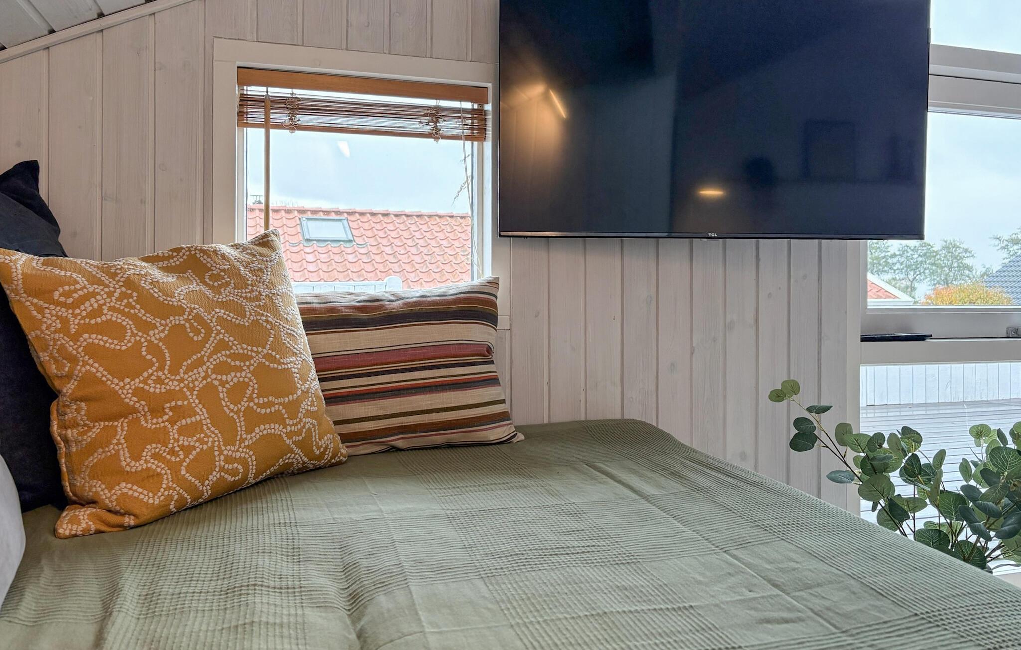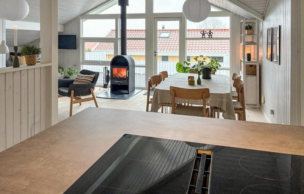 Dieses Ferienhaus strahlt Wärme, Gemütlichkeit und Stil aus. Der Kaminofen verbreitet eine wohlige Atmosphäre, während große Fenster viel Licht hereinlassen und den Blick auf die Umgebung öffnen. Umgeben von weichen Stoffen, warmen Farben und liebevollen Details fühlen Sie sich schnell wie zuhause. Ob beim Lesen in der Fensternische oder bei einem Glas Wein am Kaminfeuer – hier fällt es leicht, zur Ruhe zu kommen und den Alltag zu vergessen.