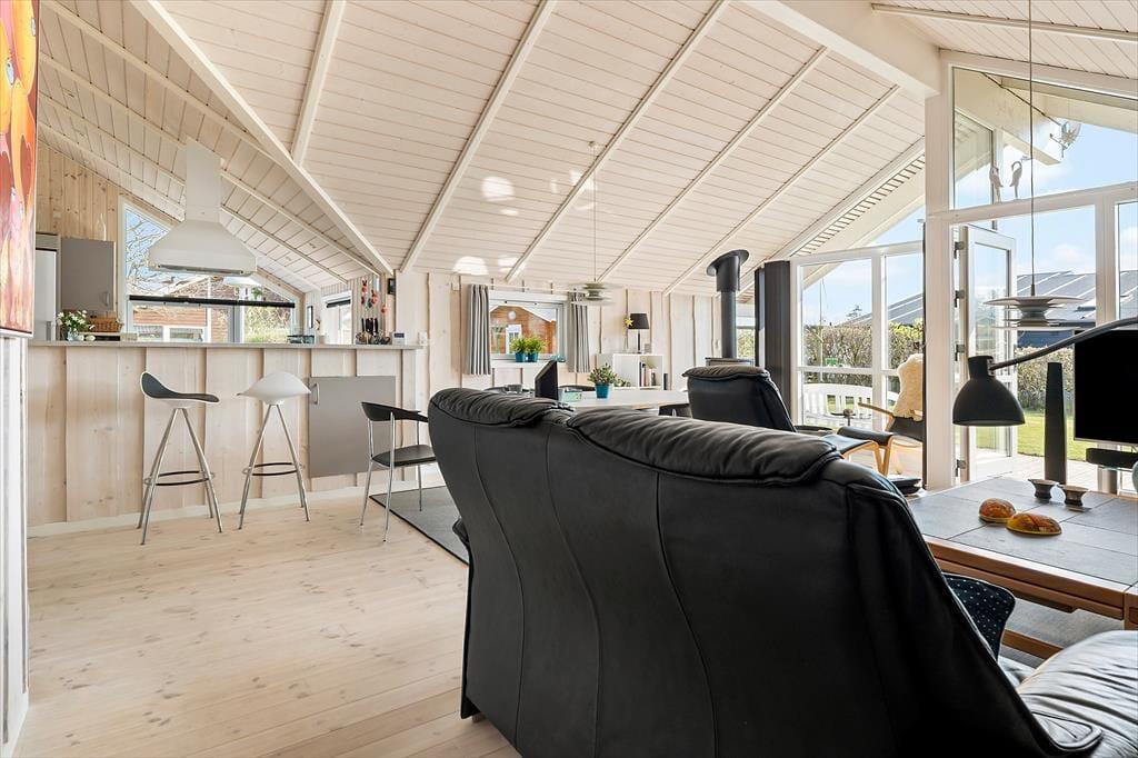 Beim Betreten des Hauses wirst du sofort von einer angenehmen, einladenden Atmosphäre empfangen – hell, luftig und freundlich. Das Interieur in hellen Farben und die offene Dachkonstruktion schaffen ein wunderbares Raumgefühl und verleihen dem Haus eine leichte, einladende Ausstrahlung. Der offene Wohnbereich vereint Küche und Wohnzimmer und wird ganz schnell zum natürlichen Treffpunkt für die ganze Familie – ob beim gemeinsamen Kochen, beim Spielen am Esstisch oder beim Entspannen auf dem Sofa mit Blick in den Garten. Das Badezimmer ist mit einer herrlichen Whirlpool-Badewanne und einer Sauna ausgestattet – die perfekte Wohlfühloase nach einem Strandtag oder einem ausgedehnten Spaziergang in der Natur. Dieses Ferienhaus lädt ein zu Ruhe, Nähe und Qualitätszeit mit den Menschen, die dir am Herzen liegen.