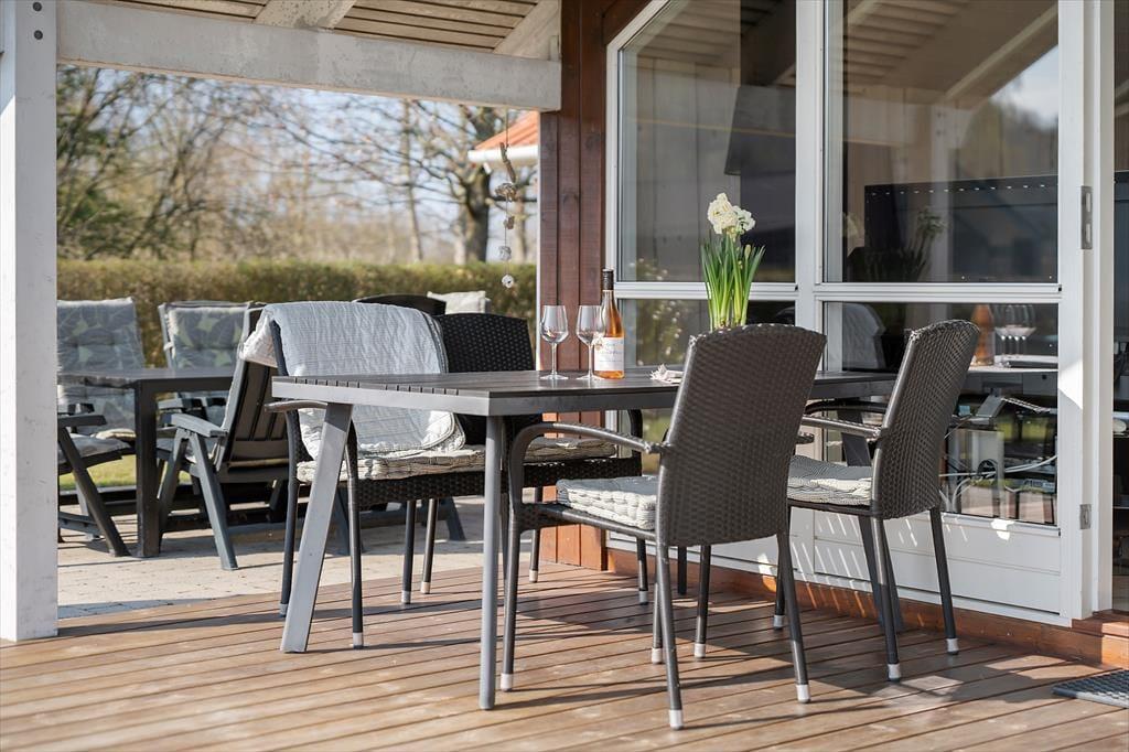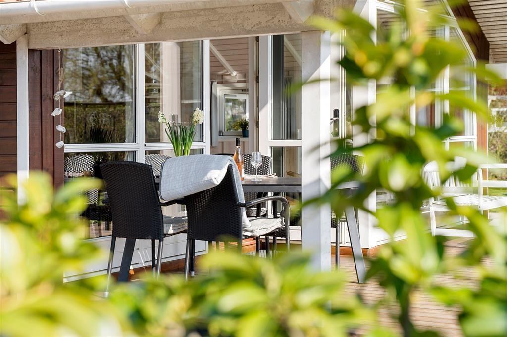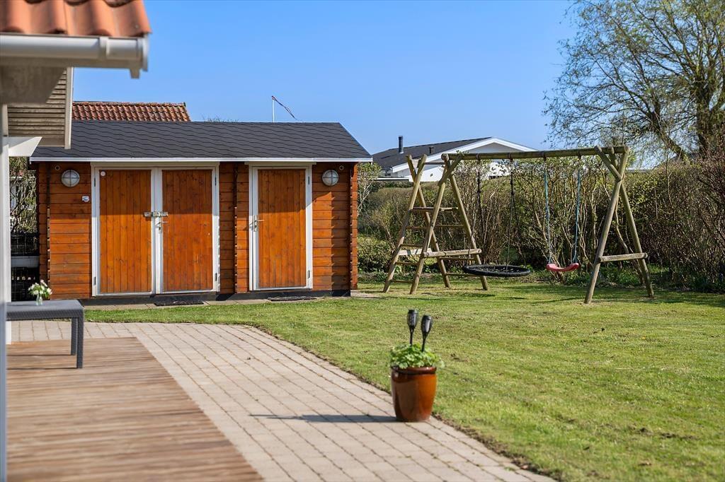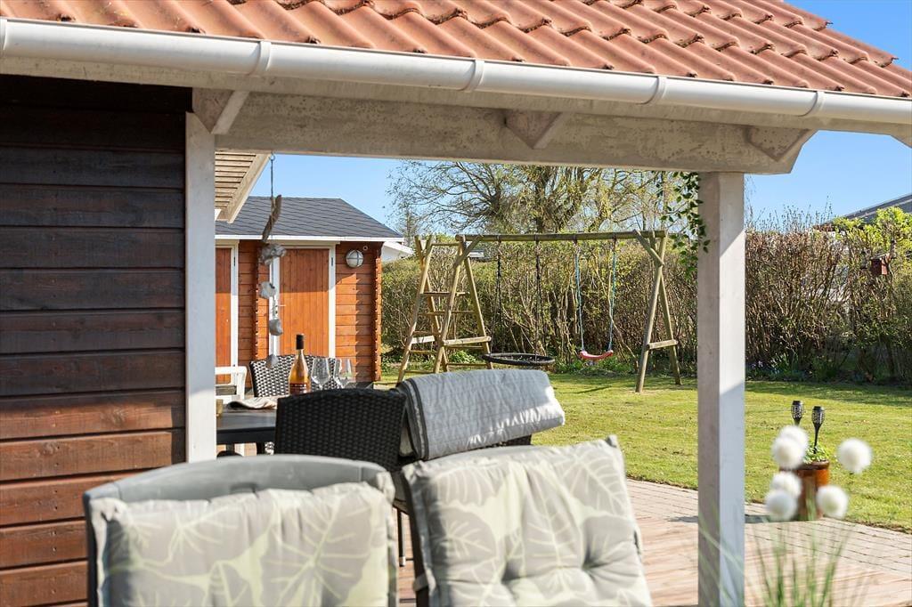 Draußen setzt sich die Urlaubsstimmung im gemütlichen, abgeschirmten Garten fort, der sowohl Raum für Entspannung als auch für Spiel und Spaß bietet. Die großzügigen Terrassen machen Lust auf lange Sommertage unter freiem Himmel – mit Kaffee in der Morgensonne, gemeinsamen Grillabenden und stillen Nächten unter dem Sternenhimmel. Die Terrasse ist mit bequemen Gartenmöbeln ausgestattet, und im Garten findest du windgeschützte Ecken, in denen du ein Buch lesen oder einfach die Vogelstimmen genießen kannst. Die Kinder werden die Schaukel und die grüne Rasenfläche lieben – perfekt für fantasievolle Spiele. Alles liegt eingebettet in einer ruhigen Umgebung, in der die ganze Familie das Leben im Freien in aller Ruhe genießen kann – nur wenige Schritte vom Wasser entfernt.
