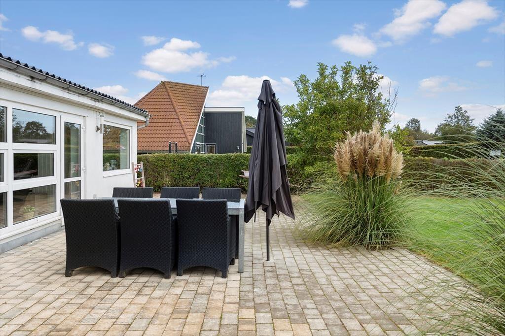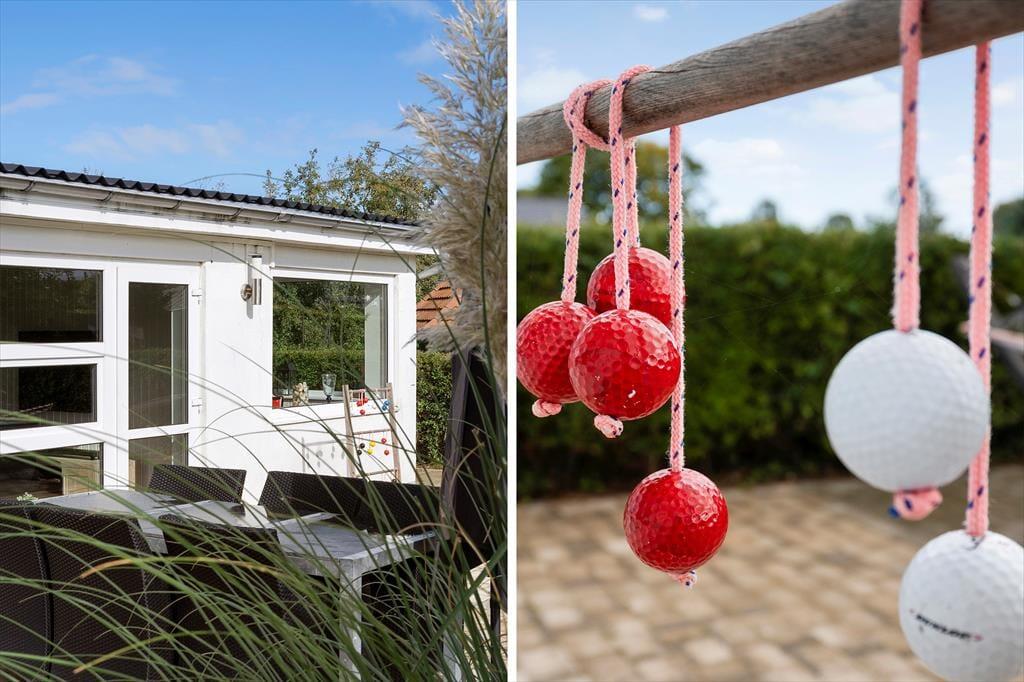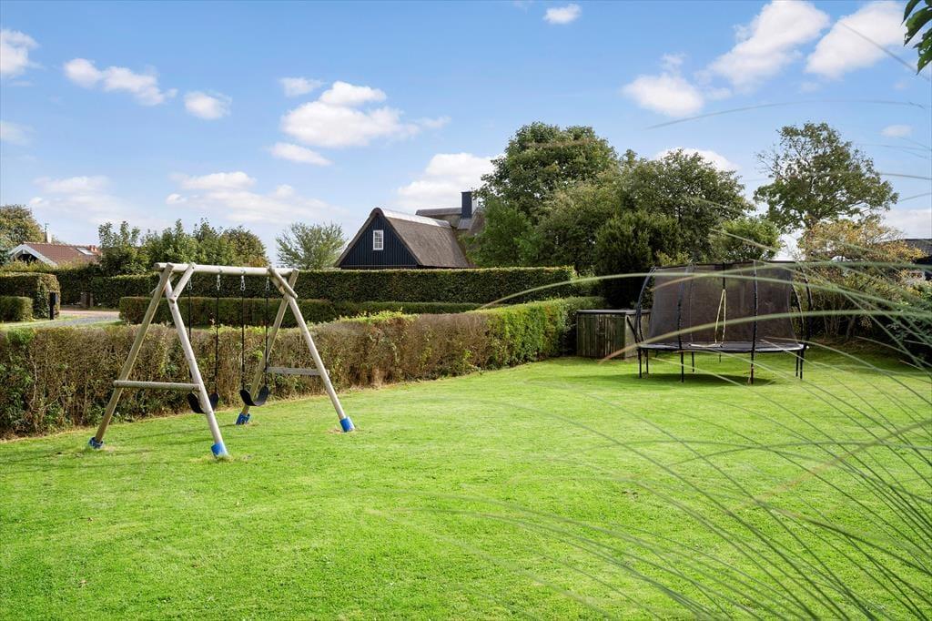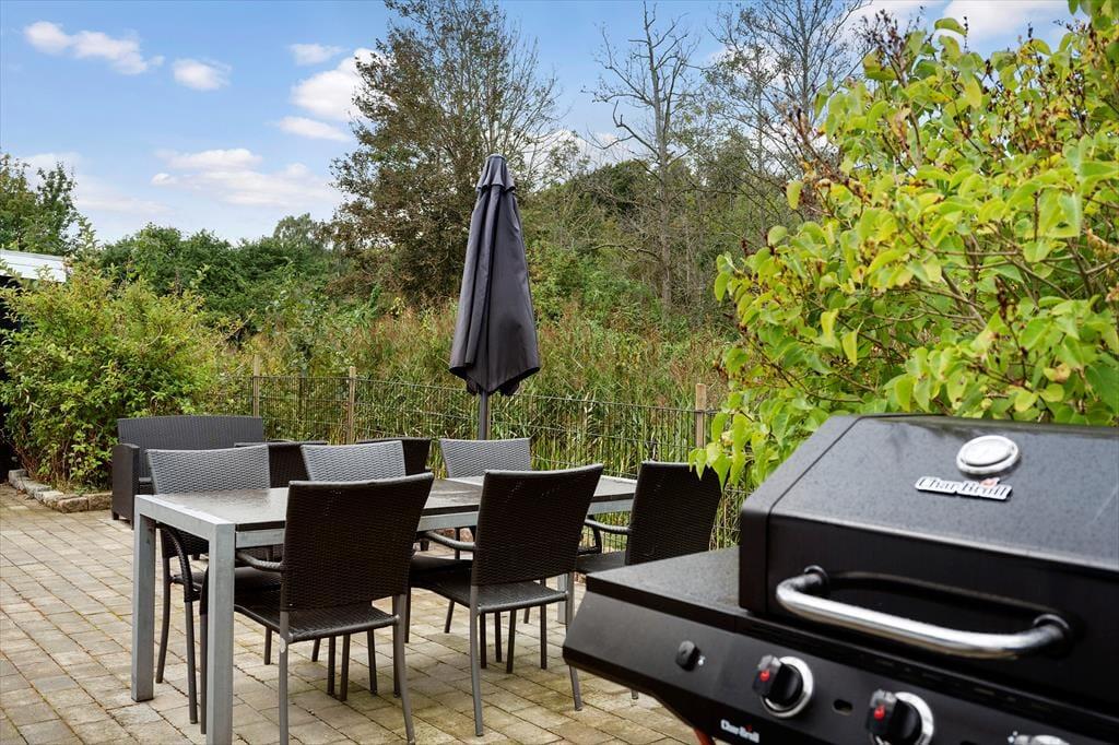 Das Ferienhaus ist von schönen Terrassen umgeben, die sich rund um das Haus erstrecken, sodass du jederzeit Sonne oder Schutz vor dem Wind findest. Starte den Tag mit einer frischen Tasse Kaffee in der Morgensonne oder lasse den Abend mit einem Glas Wein unter dem Sternenhimmel ausklingen. Eines der absoluten Highlights des Ferienhauses ist das Wildnisbad, in dem du im warmen Wasser entspannen und das Wohlgefühl genießen kannst, während im Hintergrund die Vögel singen. Der große Garten lädt zu Spiel und Aktivität ein – die Kinder können sich auf dem Trampolin vergnügen oder schaukeln, während die Erwachsenen in den Gartenmöbeln entspannen oder den Grill für ein gemütliches Abendessen anheizen. Der gesamte Außenbereich ist darauf ausgelegt, das Leben unter freiem Himmel zu genießen und bleibende Erinnerungen zu schaffen.