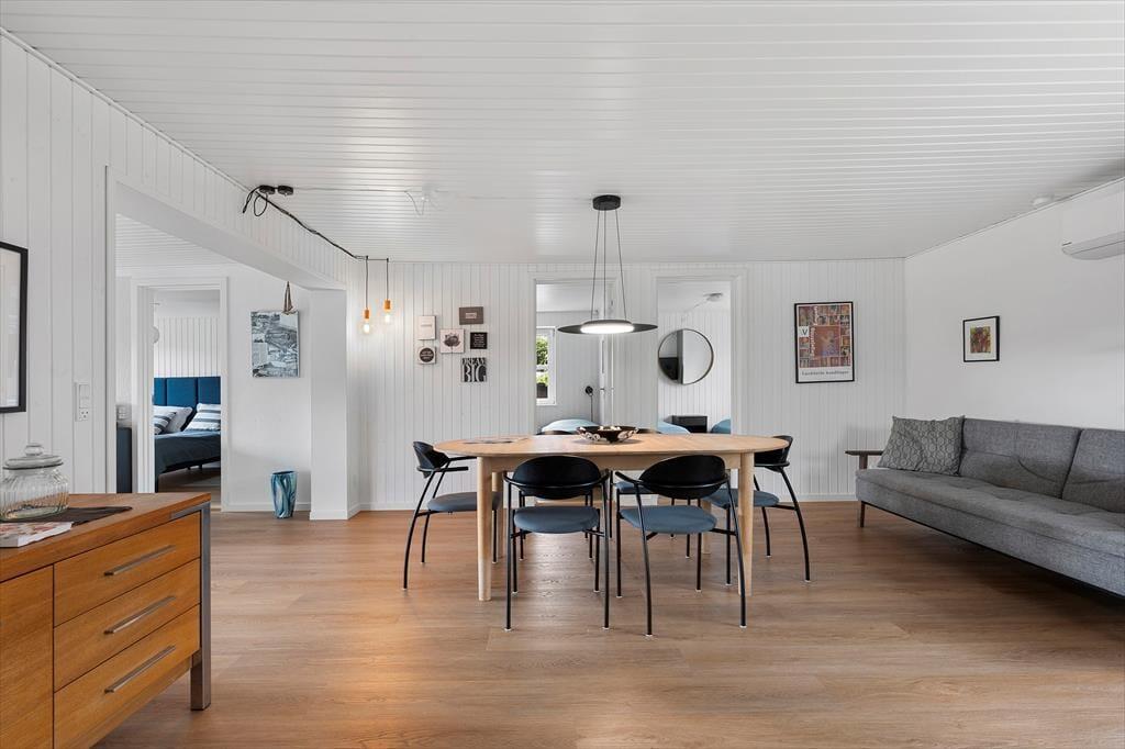 Beim Betreten dieses Ferienhauses wirst du von einer hellen und einladenden Atmosphäre empfangen, die sofort für Entspannung sorgt. Die Einrichtung ist schlicht und gemütlich, und die guten Schlafzimmer bieten Raum für Ruhe und Erholung nach einem erlebnisreichen Tag. Der offene Wohnbereich bildet den perfekten Rahmen für gemeinsame Mahlzeiten, Brettspiele und gute Gespräche. Von hier aus kannst du durch die großen Fenster den Blick auf den grünen Garten genießen, die viel Licht hereinlassen und eine natürliche Verbindung zwischen Innen- und Außenbereich schaffen. Das Haus strahlt echte Urlaubsstimmung aus – hier fühlt man sich schnell zu Hause und findet die Ruhe, für die im Alltag oft wenig Platz ist.