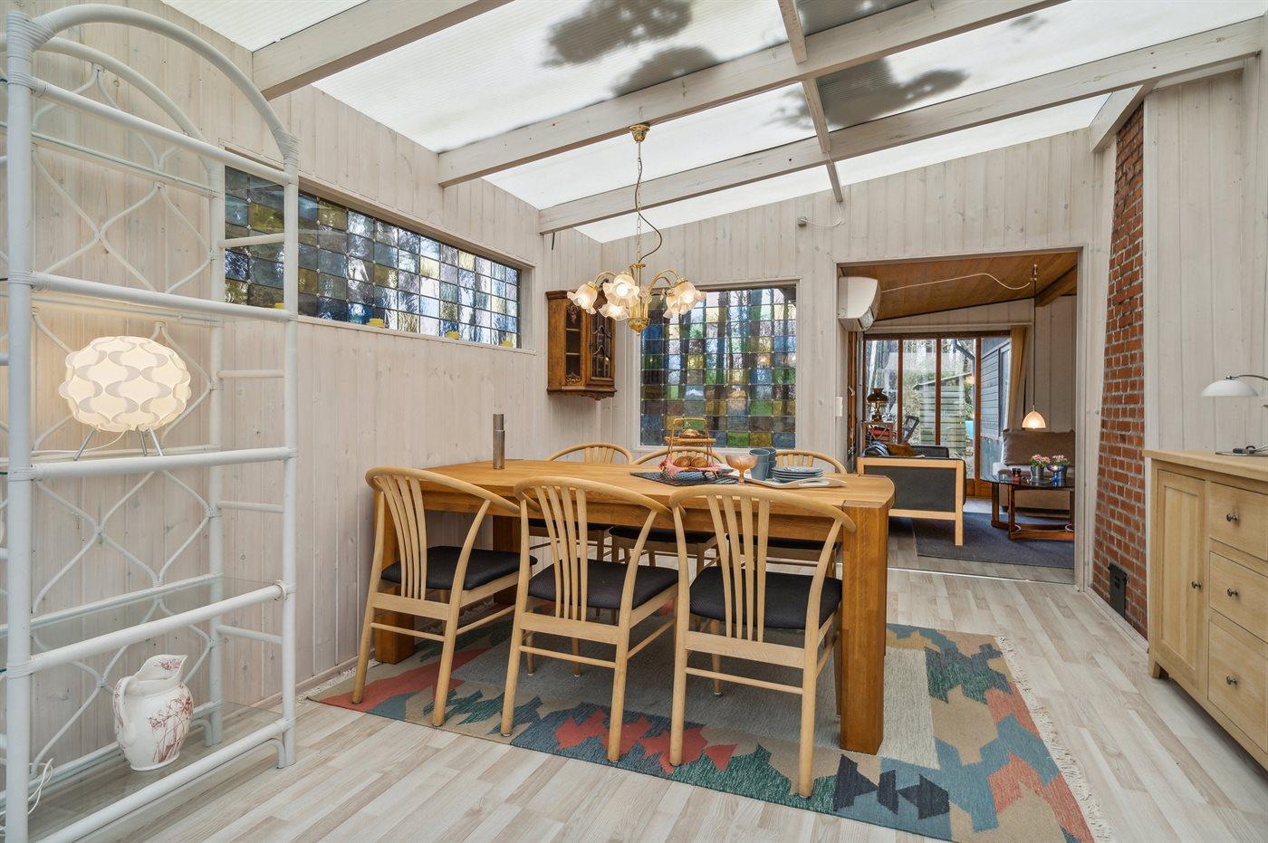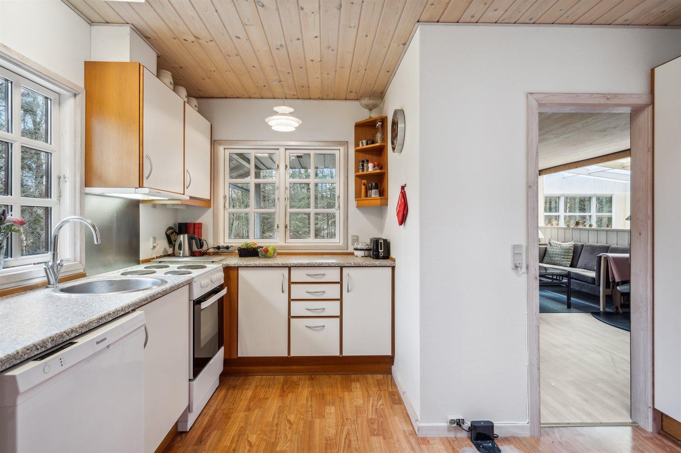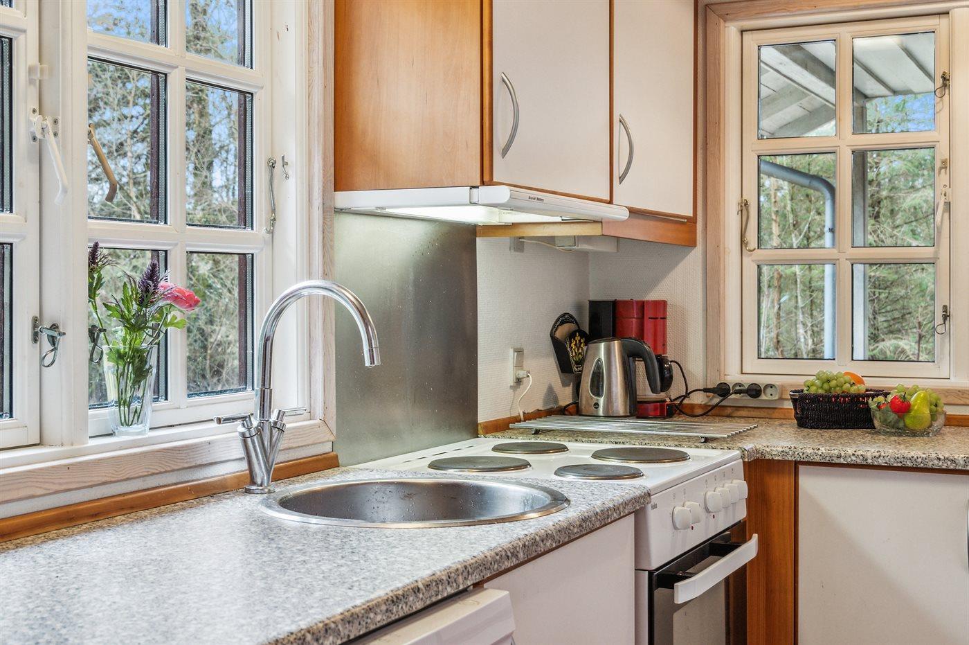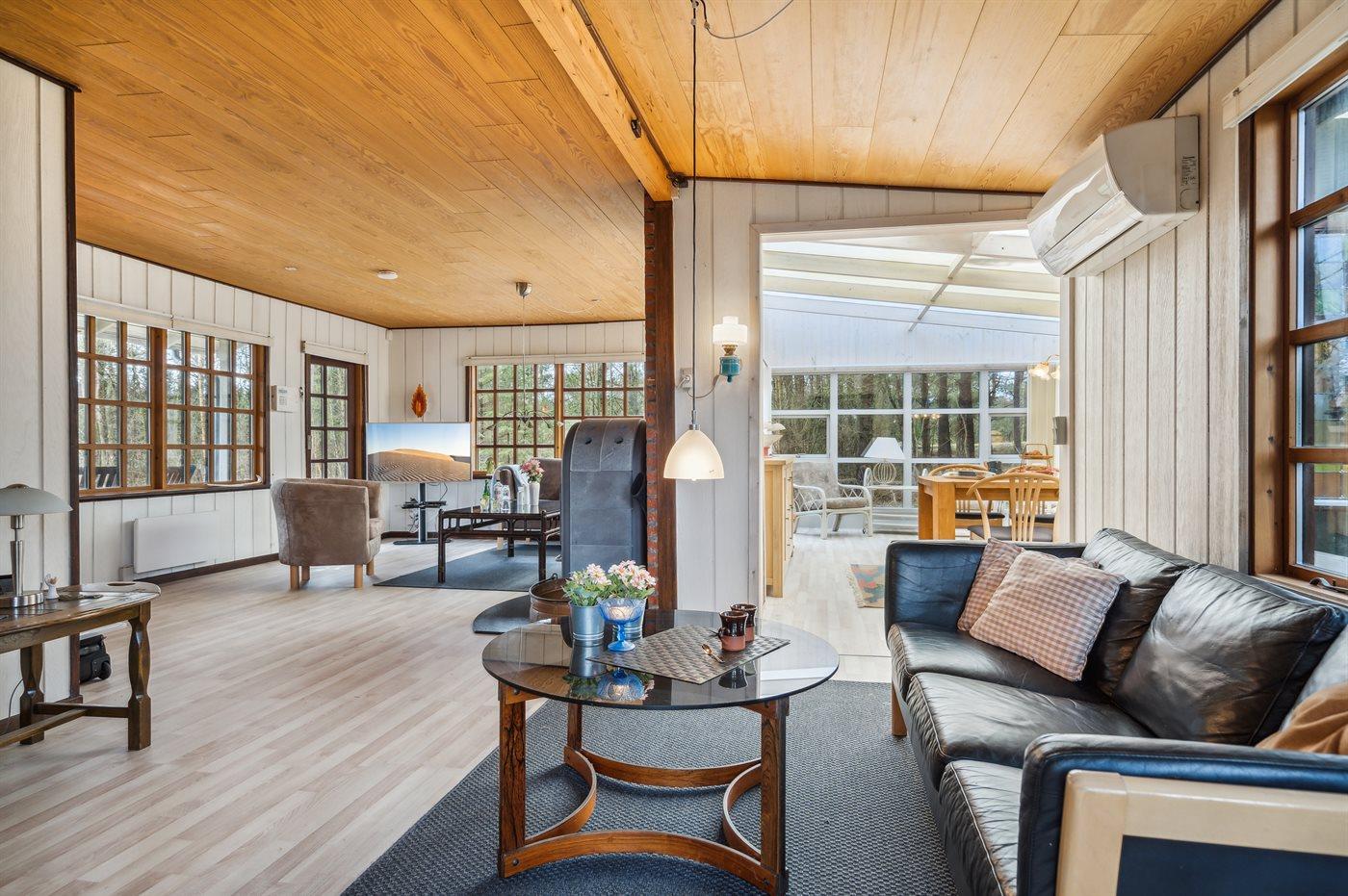 Das Ferienhaus liegt auf einem von Bäumen umgebenen Grundstück, sodass Sie sich ungestört im Garten aufhalten und die Ruhe genießen können. Es gibt sowohl eine offene als auch eine überdachte Terrasse, auf denen Sie Ihren Urlaub ganz unabhängig vom Wetter genießen können.