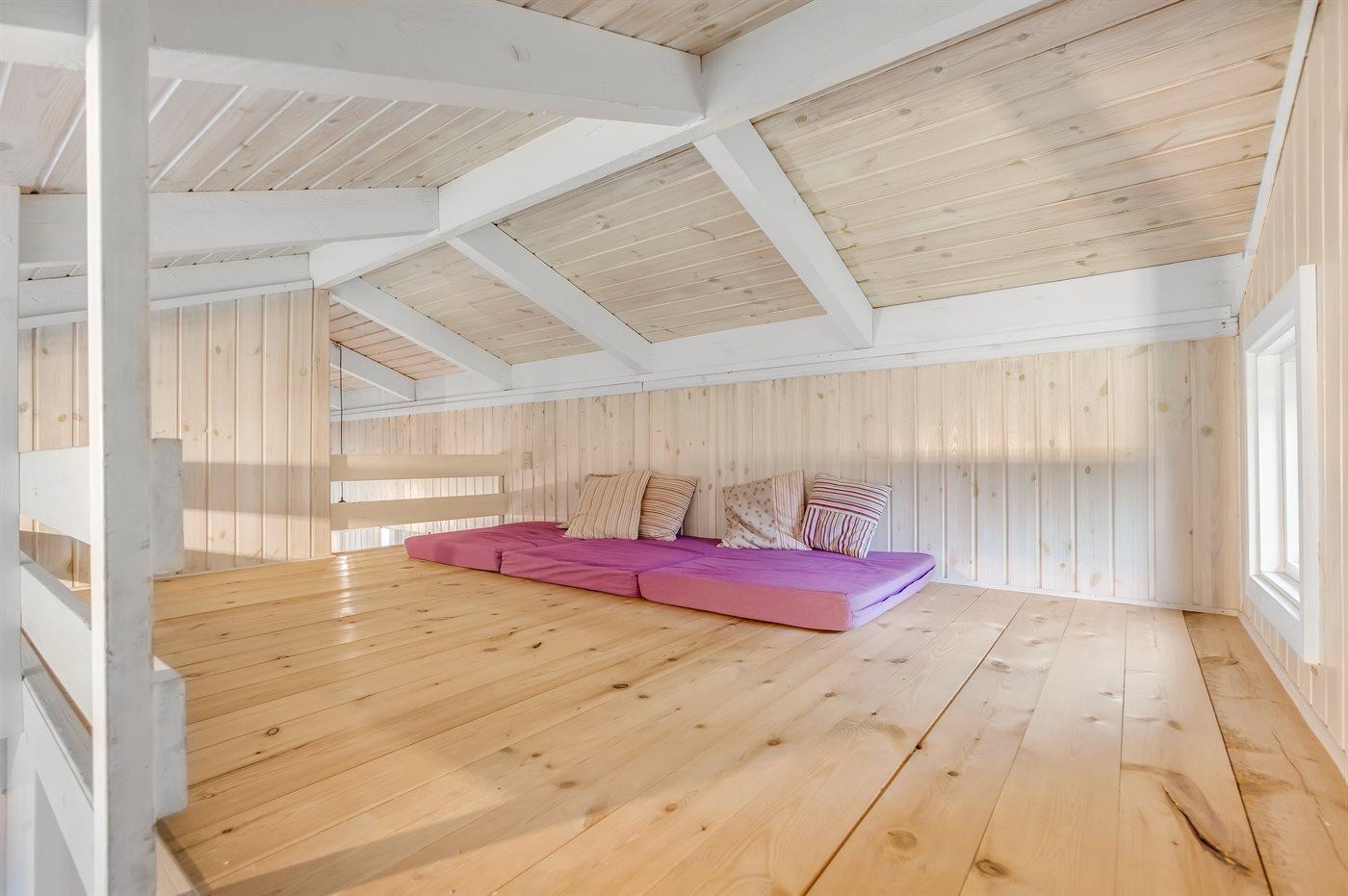 Die Schlafplätze verteilen sich auf 4 Schlafräume. 6 Schlafplätze in Doppelbetten. 2 Schlafplätze in einem Etagenbett. Außerdem gibt es ein großes offenes Obergeschoss. Ferner steht ein Kinderbett zur Verfügung.