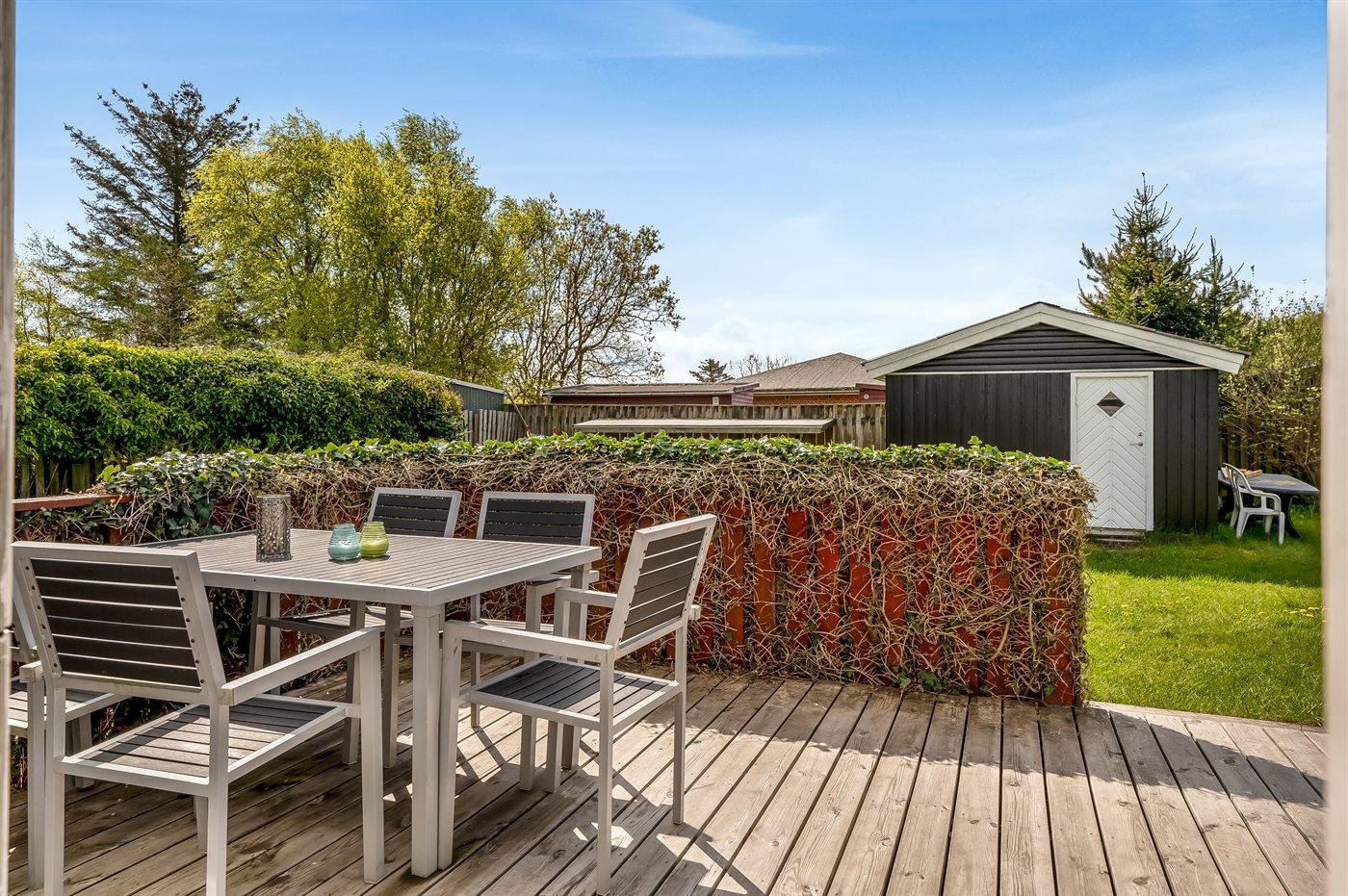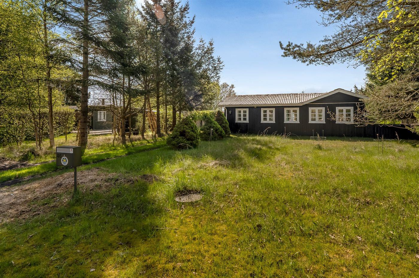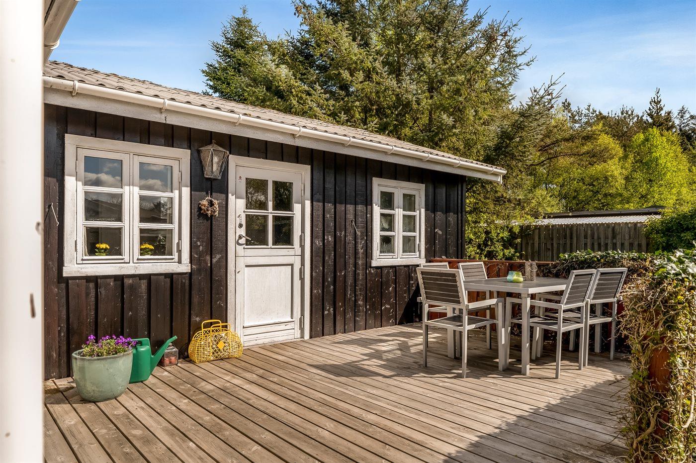 Gemütliches Ferienhaus in Holz, auf einem Naturgrundstück nur 50 m vom Bisnap Strand gelegen. Terrasse mit Gartenmöbeln und Grill.