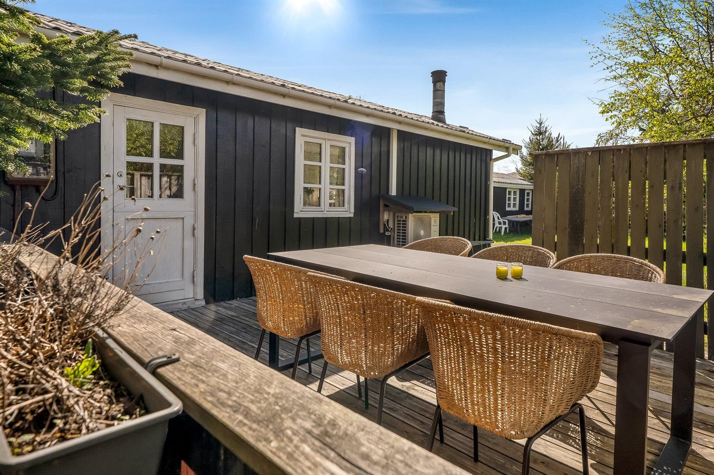 Gemütliches Holzferienhaus nahe dem Bisnap Strand mit Terrasse, Grill und energiesparender Wärmepumpe.