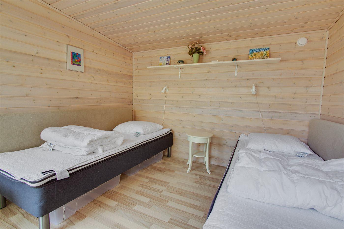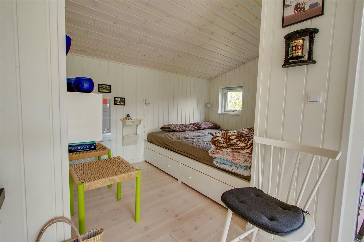 Die Schlafplätze verteilen sich auf 3 Schlafräume. 2 Schlafplätze in einem Doppelbett. 4 Schlafplätze in Einzelbetten.2 Schlafplätze im Alkoven. 2 von diesen Schlafplätzen befinden sich im Gästehaus und 2 befinden sich im Wohnzimmer.