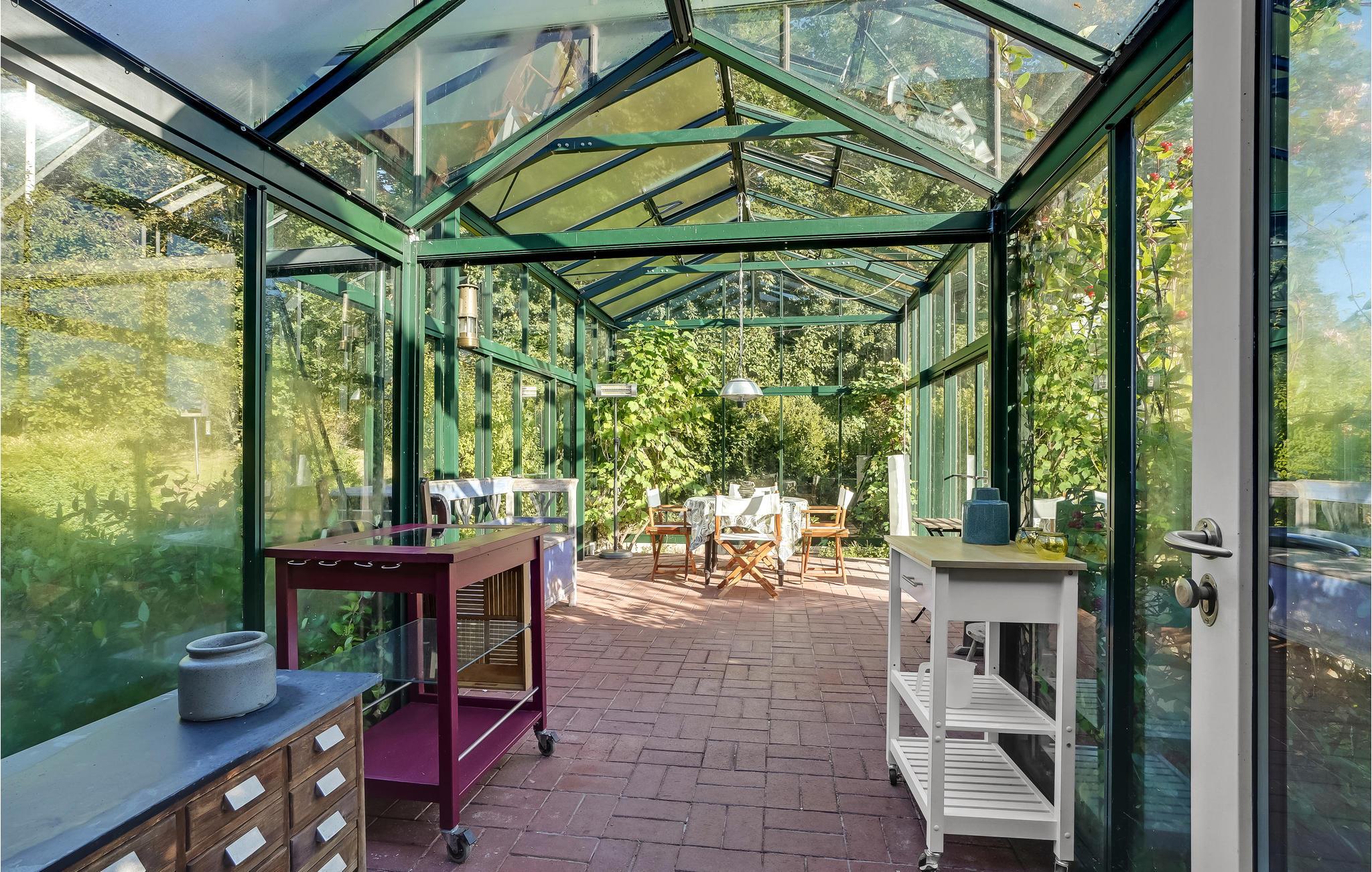 Zum Haus gehört ein riesiges Naturgrundstück, wo Groß und Klein reichlich Platz zum Spielen oder Entspannen finden. Verbringen Sie gemütliche Sommerabende auf der Terrasse bei leckerem Gegrillten und lassen Sie den Tag stimmungsvoll im hübschen Gewächshaus ausklingen.