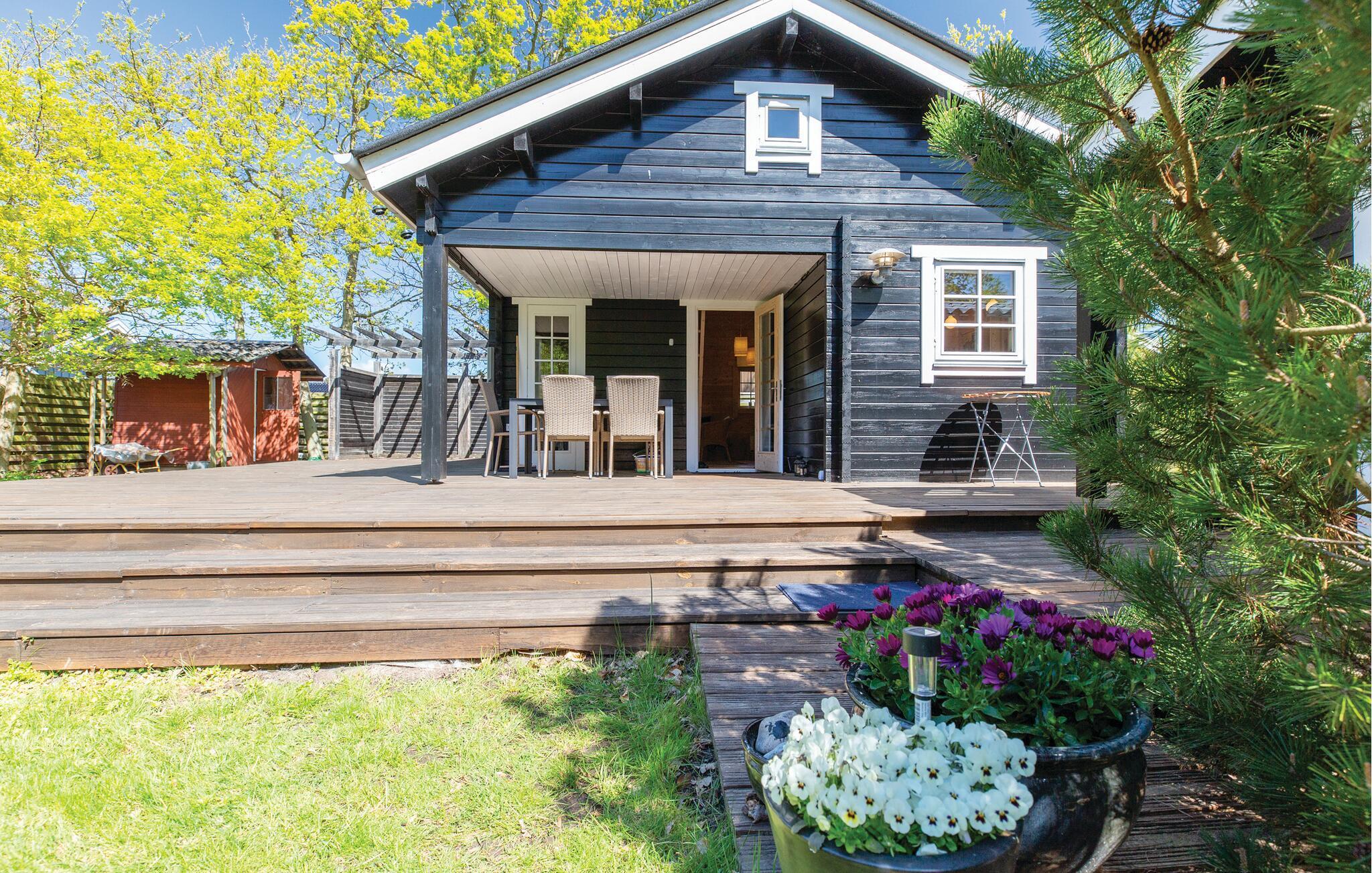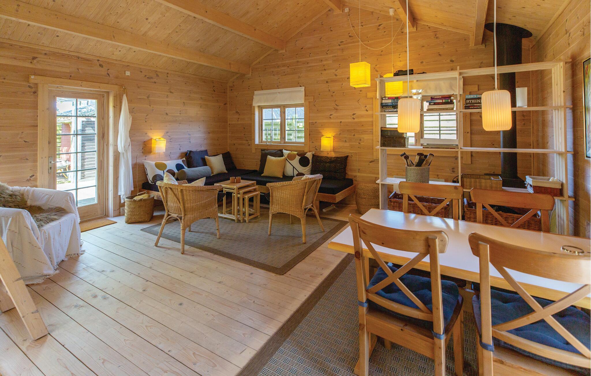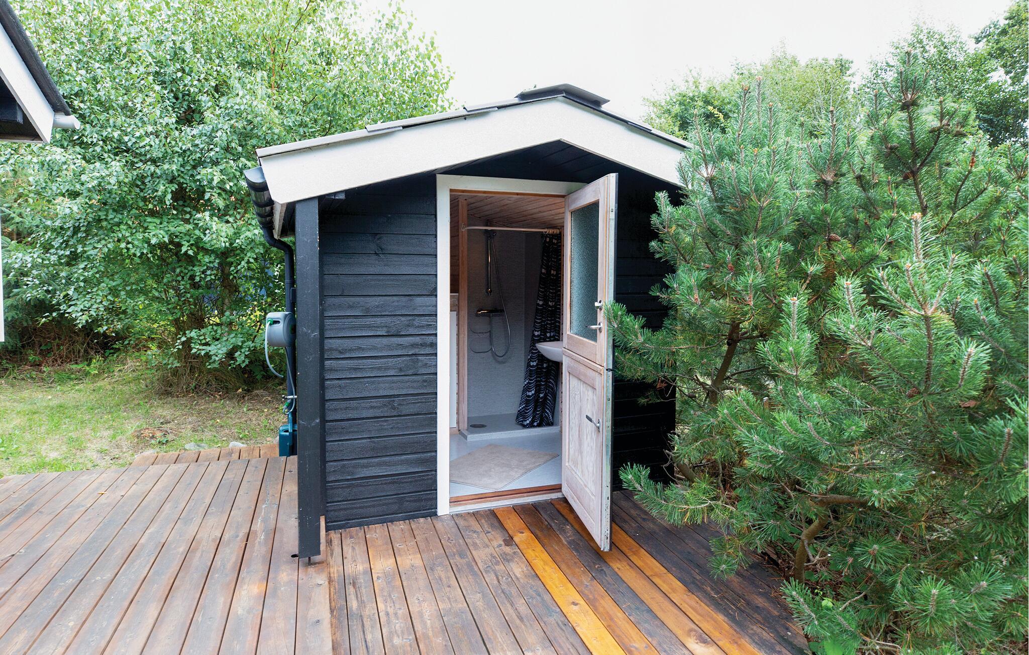 Ein Urlaub in diesem Ferienhaus steht ganz im Zeichen von Ruhe und Entspannung, und Sie werden die gemütliche Atmosphäre gleich spüren. Es gibt ein Wohnzimmer mit Kaminofen in Verbindung mit einer offenen Küche. Vom Wohnzimmer aus haben Sie Zugang zu einer großen, teilweise überdachten Holzterrasse, auf der Sie die Sonne genießen und das Rauschen des Meeres hören können. Von der Terrasse haben Sie Zugang zu einem schönen Badezimmer mit Dusche. Es gibt zwei Betten im Wohnzimmer und zwei im Nebengebäude. Es gibt außerdem Internet und Fernsehen mit dänischen, deutschen, norwegischen und schwedischen Kanälen.