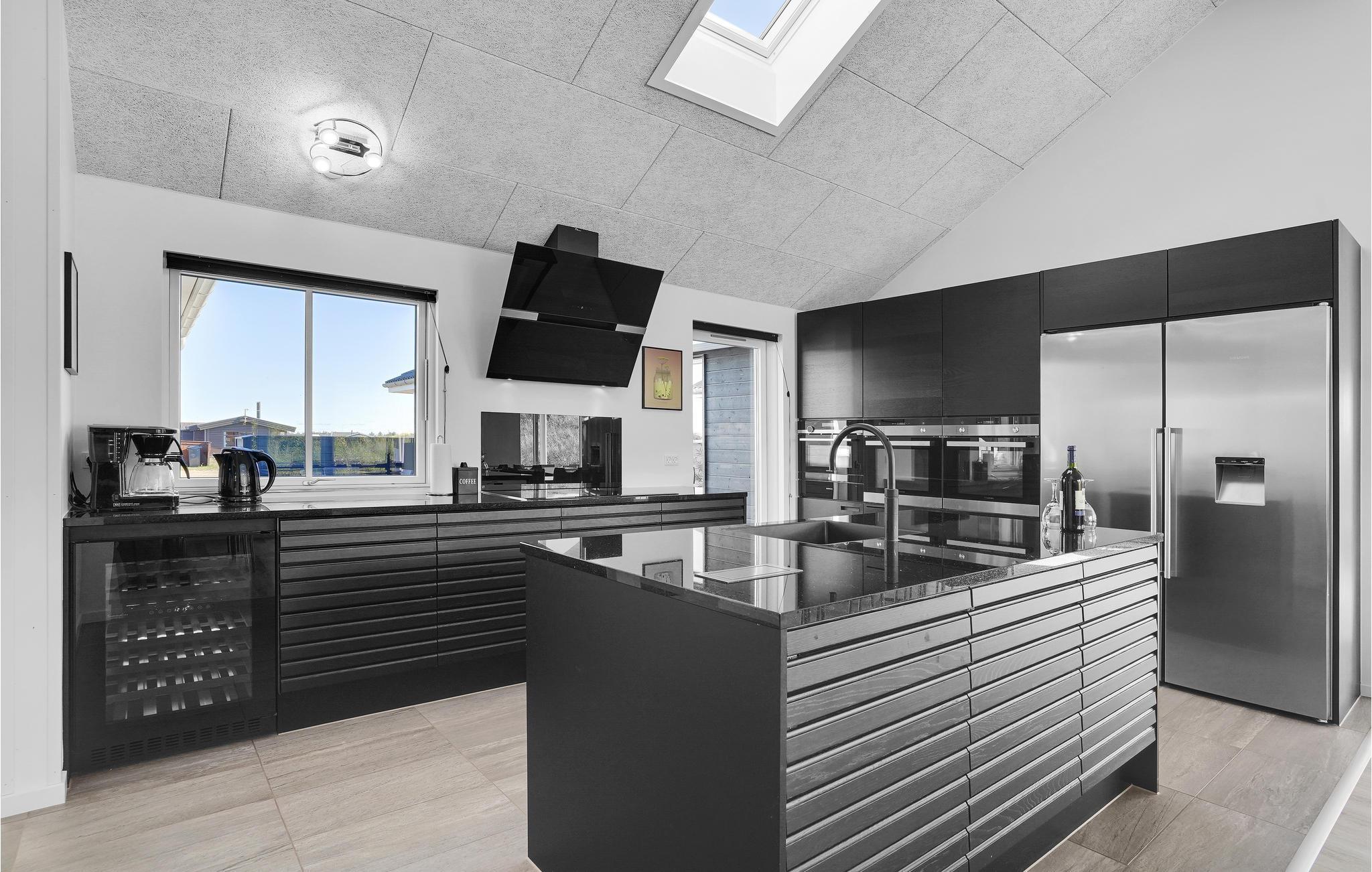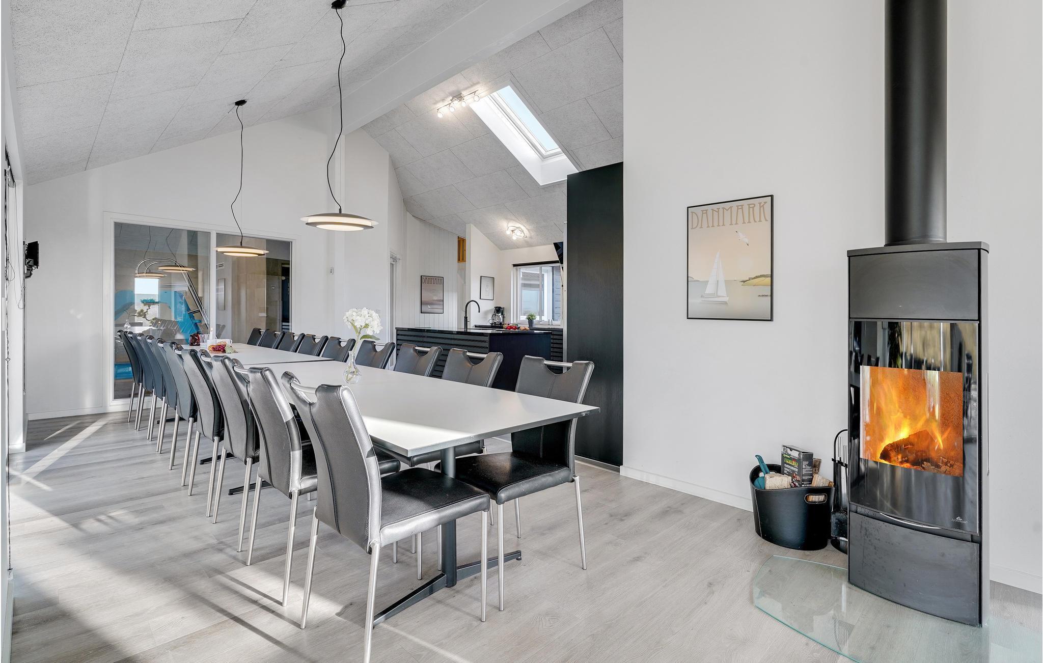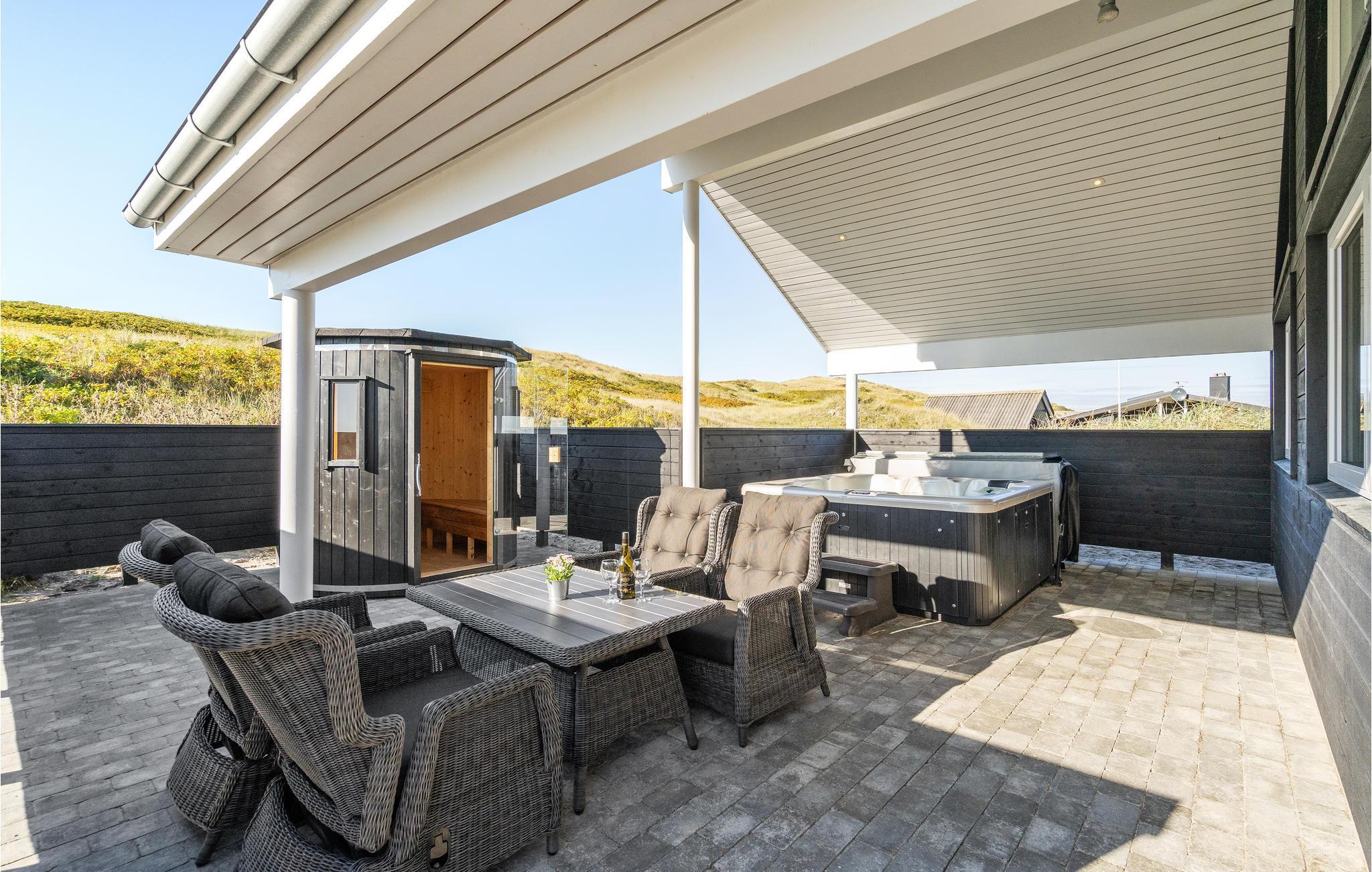 In Bjerregård, auf der Landzunge Holmsland Klit zwischen dem Ringkøbing-Fjord und der Nordsee, erwartet Sie dieses luxuriöse Ferienhaus im äußersten Dünenbereich, nur 50 m vom Wasser entfernt. Hier ist viel Platz für Familie und Freunde in der schönen Umgebung und der atemberaubenden Landschaft. Sie wohnen so nah an der Nordsee, dass Sie das Rauschen der Wellen hören und die Salzluft schmecken können. Die Nordsee ist das ganze Jahr über ein tolles Erlebnis. Das Haus verfügt über einen eigenen Pool- und Wellnessbereich mit Swimmingpool, Wasserrutsche und Gegenstromanlage. Sie können auch die Dampfsauna oder den großen Whirlpool für 6 Personen nutzen.
