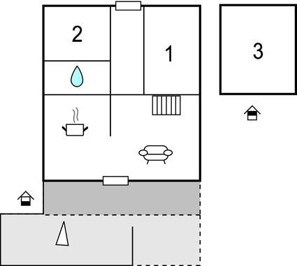 Badezimmer (nr. 1) - WC. Warmes und kaltes Wasser. Dusche