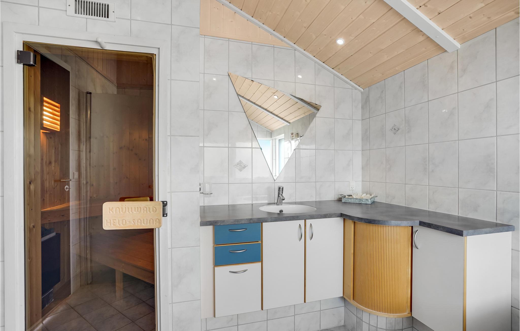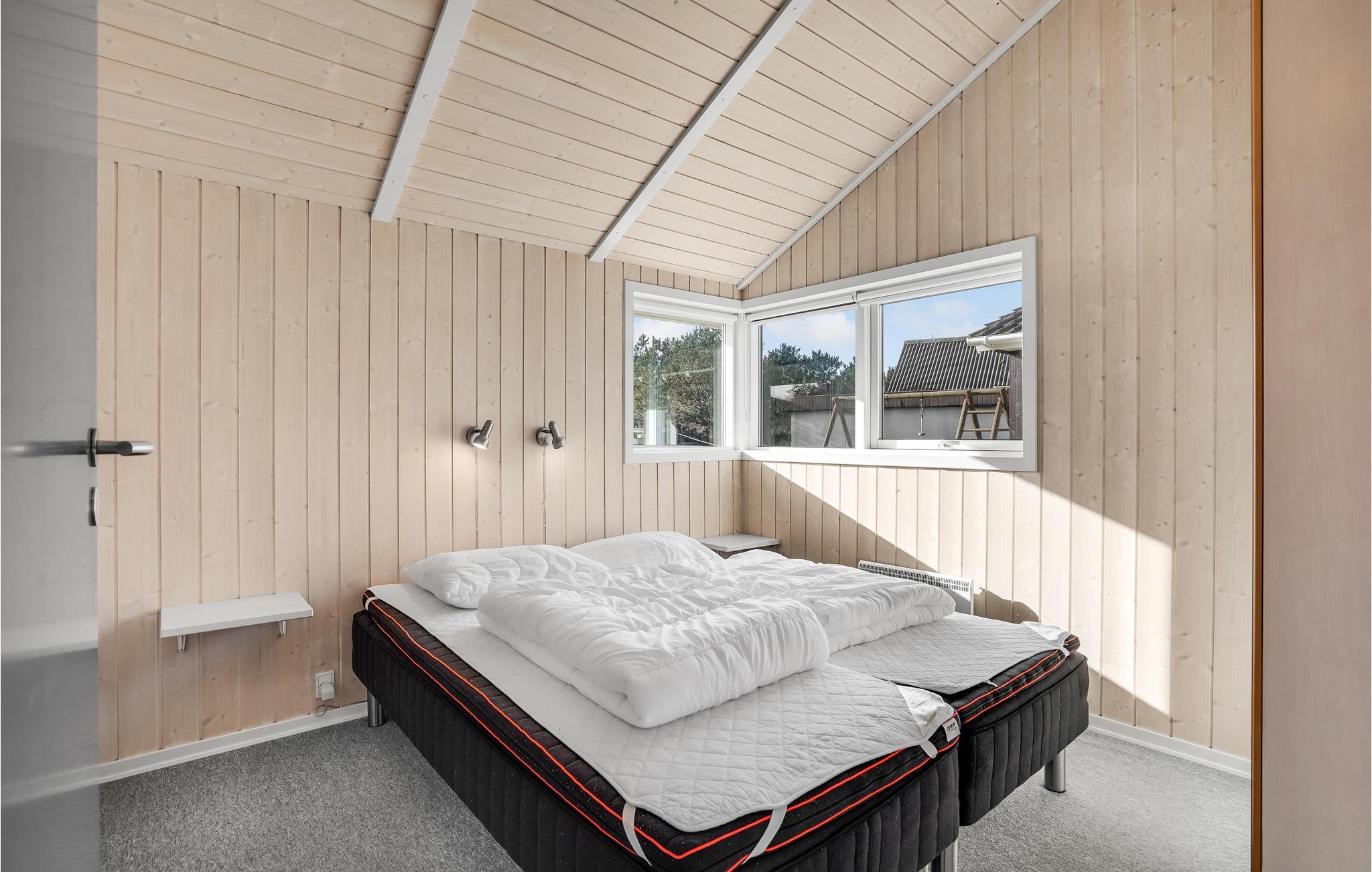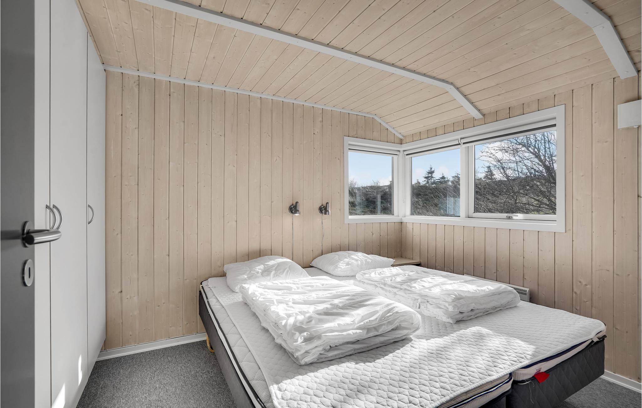 Schönes Ferienhaus auf welligem Dünengrundstück im reizvollen Bjerregård, auf dem Landstrich zwischen Meer und Fjord. Die Einrichtung ist interessant und charmant, viel Wert wird hier auf Qualität gelegt. Im geräumigen Wohnzimmer gibt es eine große Fensterfront, sie sorgt dafür, dass viel Licht ins Innere kommt und Sie sich in unmittelbarer Nähe zur Natur fühlen, dieser Raum ist zur gut ausgestatteten Küche offen.