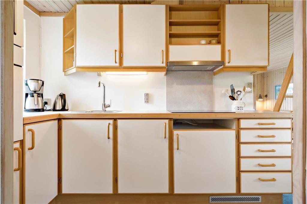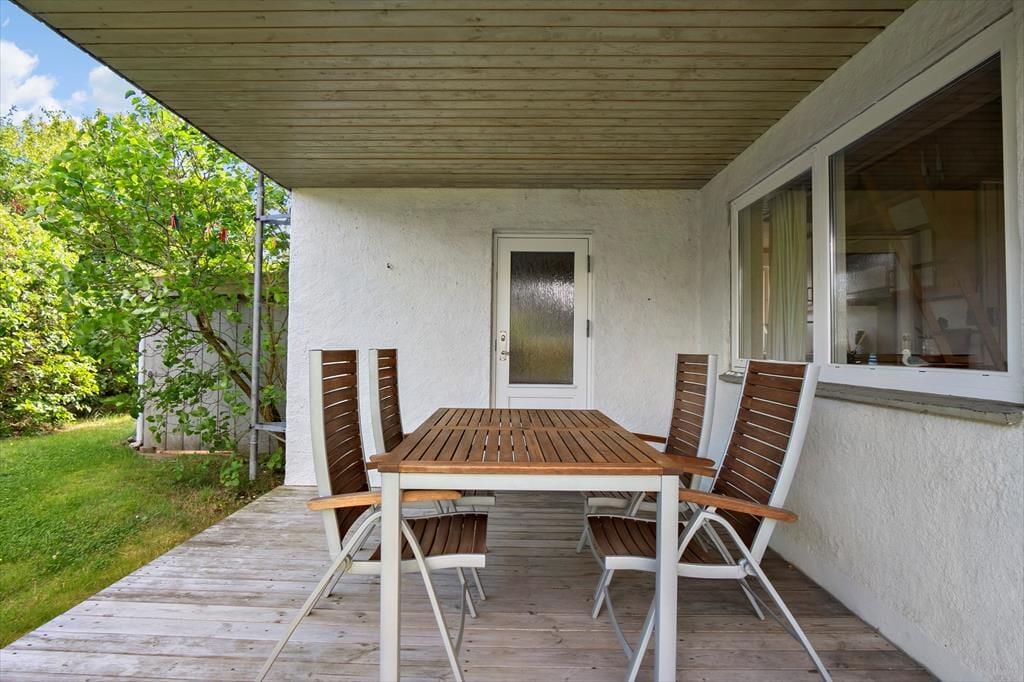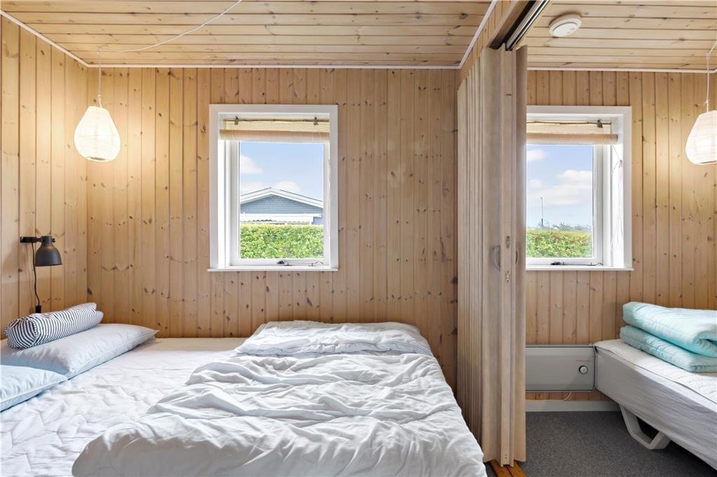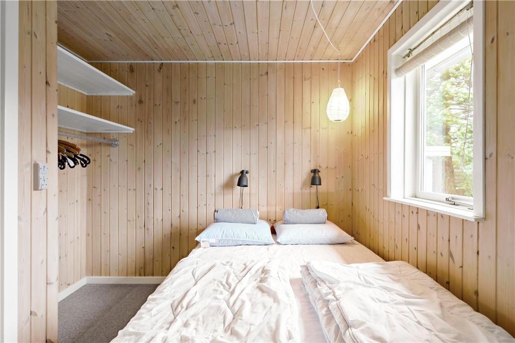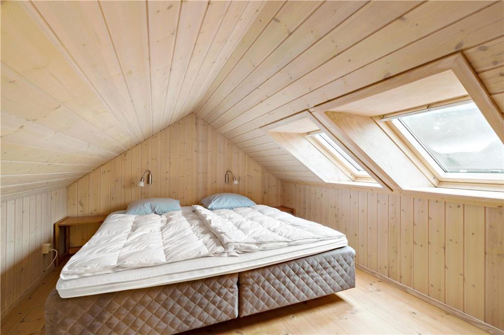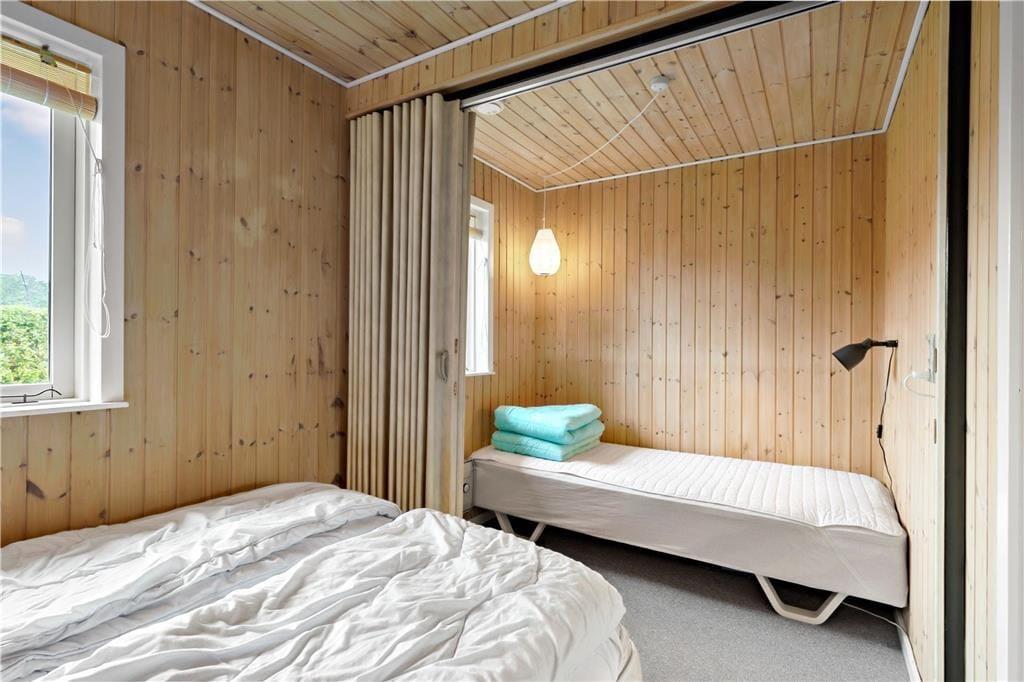 Dieses gemütliche Ferienhaus befindet sich in dem kleinen Ferienhausgebiet Blanke Mark in der Bucht Båring Vig, nördlich von Middelfart. Hier erwarten Sie sehr schöne Möglichkeiten zum Wandern, Baden und Angeln. Die gesamte Umgebung bietet sehr gute Angelmöglichkeiten. Das Haus beinhaltet einen mit der offenen Küche kombinierten Wohnraum, von dem aus Sie direkt hinaus auf die teilweise überdachte Terrasse gelangen. Hinzu gesellen sich ein Schlafraum mit einem Doppelbett und ein Schlafraum mit einem Einzelbett. Vom Wohnraum führt ein Leiter hinauf auf den geräumigen Schlafboden mit einem Doppelbett. Beachten Sie bitte, dass der Schlafboden mit schrägen Wänden lediglich in der Mitte über eine gute Raumhöhe verfügt. Im Erdgeschoss befindet sich außerdem ein Flur in dem ein Kühl- und Gefrierschrank untergebracht ist. Von diesem Flur gelangen Sie in das Badezimmer sowie auf die überdachte Terrasse an der Rückseite des Ferienhauses. Zusammengefasst handelt es sich bei diesem Urlaubsdomizil um ein ansprechendes, kleines Ferienhaus in einem ruhigen Ferienhausgebiet nah an einem guten Badestrand.