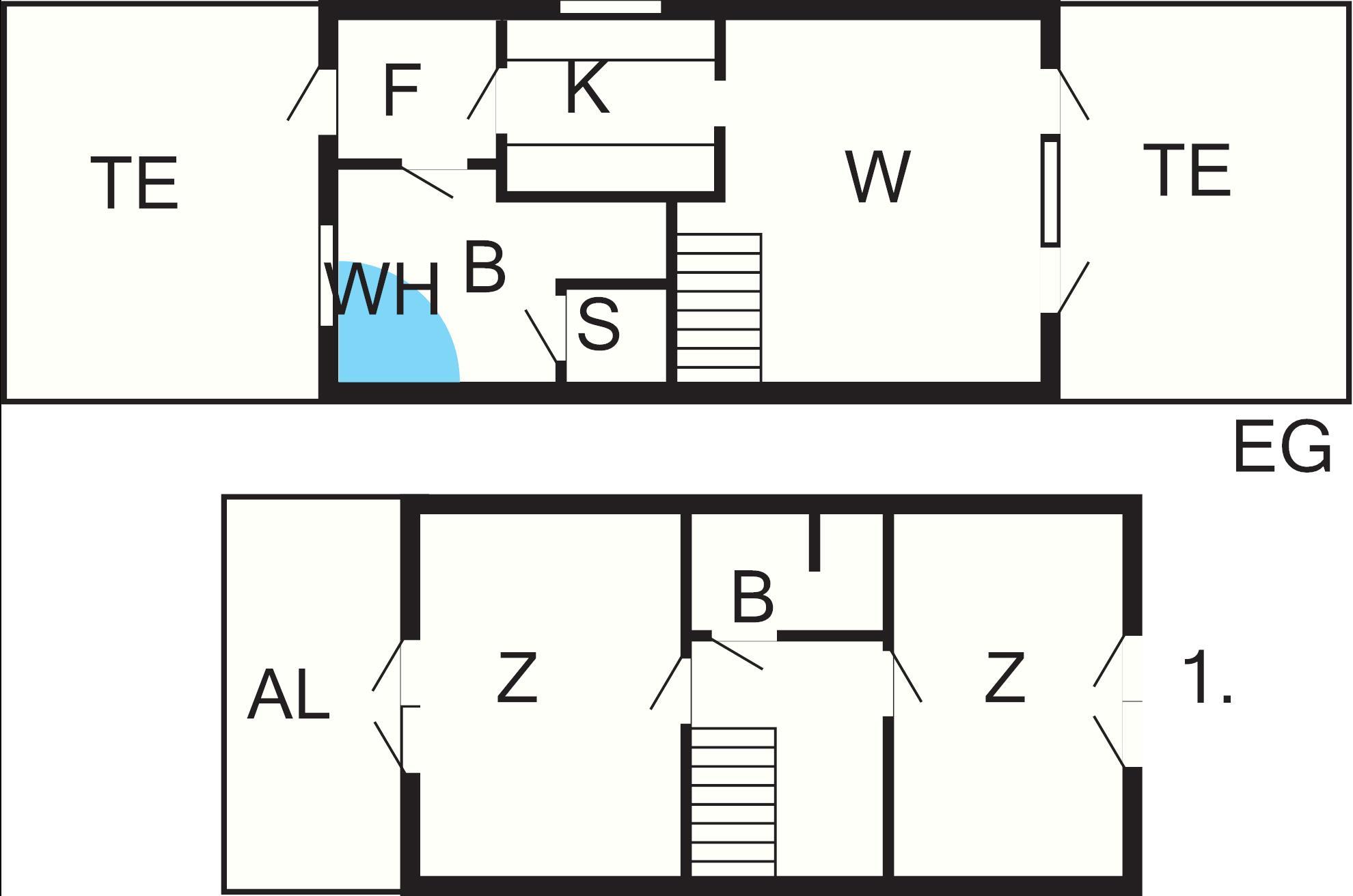 Bad: WC, Waschb., Dusche
