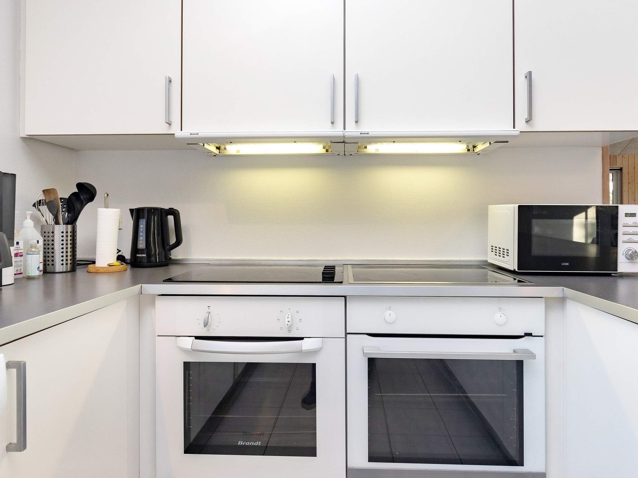 Im Zentrum des Ferienhauses befindet sich die große Wohnküche mit viel Platz für alle Gäste. In der gut ausgestatteten Küche finden Köche jeden Alters Platz, um das Abendessen zuzubereiten. Nach dem Kochen können Sie die Ergebnisse der Kocharbeiten am langen Esstisch in der Mitte des Raumes genießen.