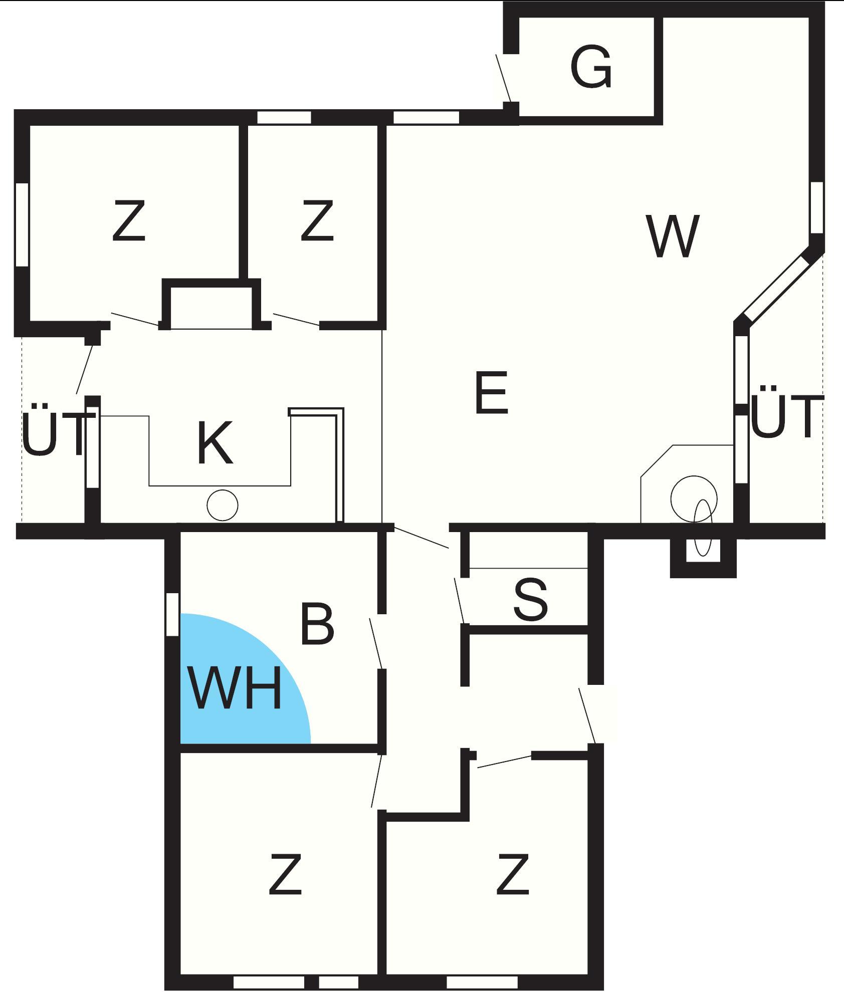 4 Schlafz.: (1DB)+(1DB)+(2K)+(2B), Kinderbett