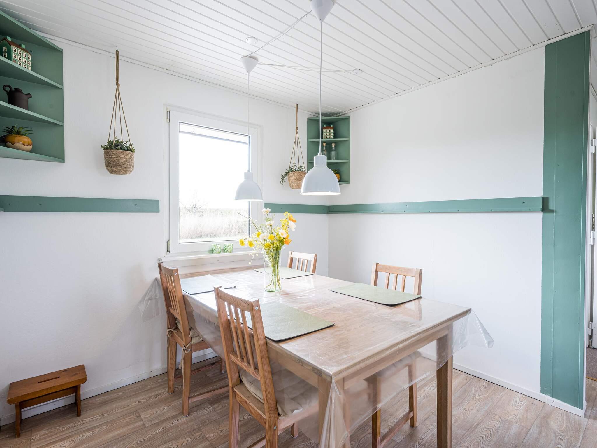 Im Inneren bietet der offene Küchen- und Wohnbereich einen einladenden Raum für das Familienleben. Ein Holzofen sorgt für gemütliche Abende, während eine klimafreundliche Wärmepumpe das ganze Jahr über für angenehme Temperaturen sorgt. Vom Wohnbereich aus gelangt man direkt auf eine überdachte Holzterrasse mit bequemen Gartenmöbeln und Sonnenliegen. Von der Terrasse auf dem Deich genießen Sie einen atemberaubenden Panoramablick auf die umliegende Küstenlandschaft.