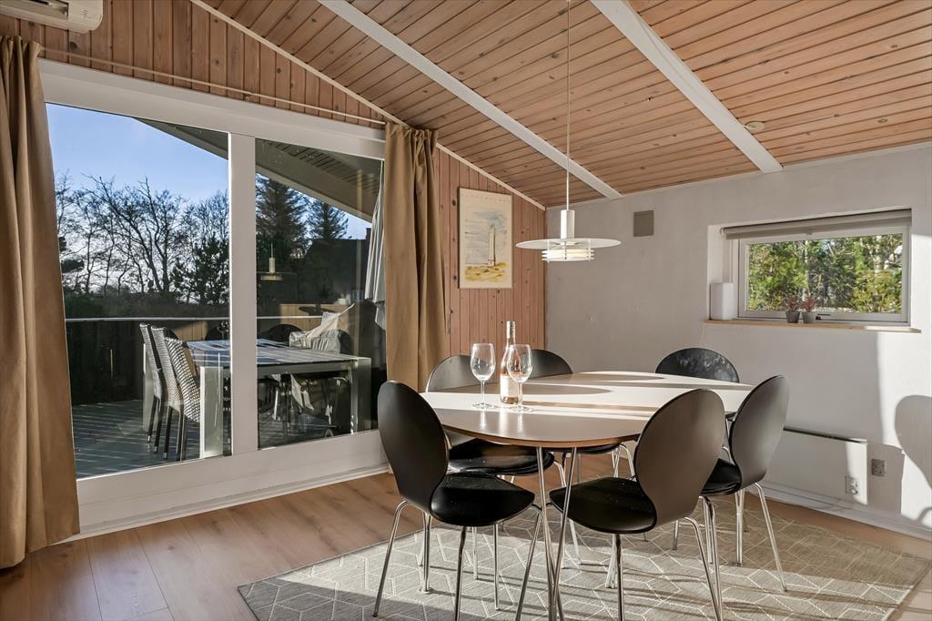 Dieses gemütliche Ferienhaus liegt lediglich einen Kilometer vom Ortskern und vom Strand entfernt. Auch der Blåvand Zoo und das spektakuläre, neue Tirpitz Museum sind schnell erreicht. Die gesamte Umgebung eignet sich hervorragend für Spaziergänge, Wanderungen und Radtouren. Unzählige Wege und Pfaden durchziehen das Gebiet. Ein großes, geschütztes Heidegebiet ganz in der Nähe verspricht wunderbare Naturerlebnisse.