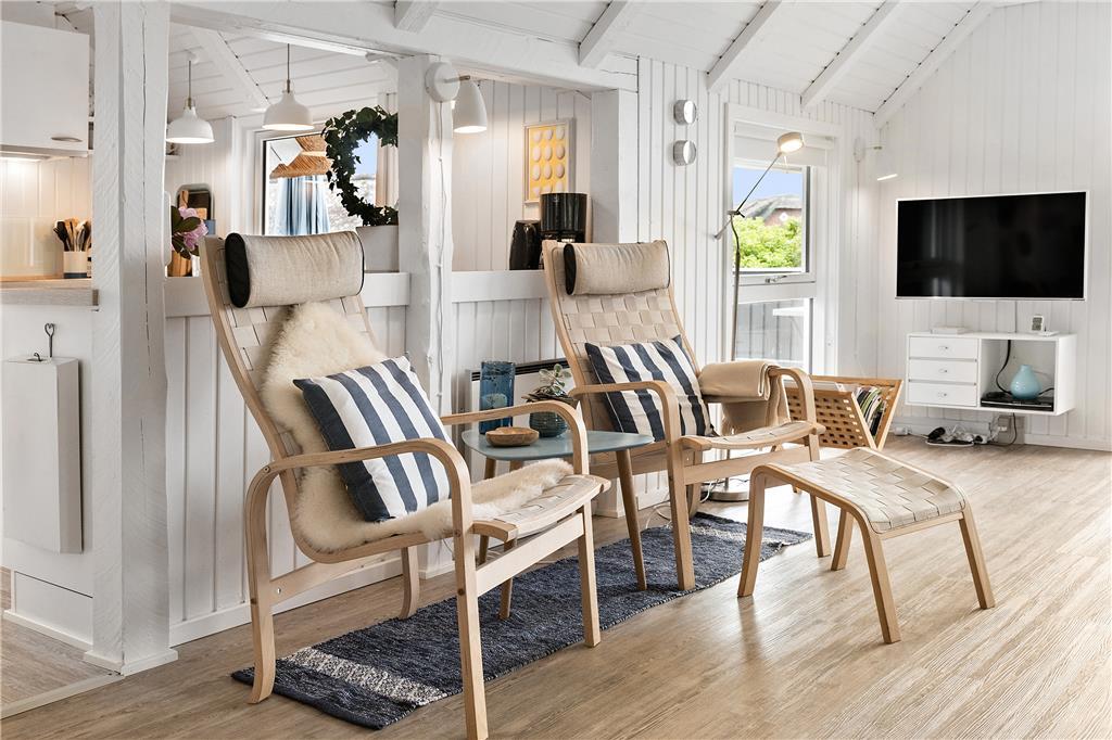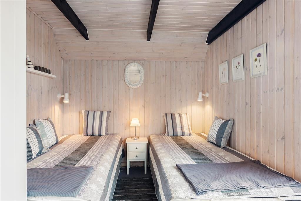 Sobald Sie dieses Ferienhaus betreten, werden Sie sich wie zu Hause fühlen und der Alltagsstress verfliegt wie im Nu und die Entspannung setzt sofort ein. Hier treffen Sie auf eine gemütliche Ferienhausidylle. Das Haus ist außerordentlich geschmackvoll mit vielen Details eingerichtet, die kaum zu beschreiben sind. Ein Haus, dass unbedingt kennengelernt werden muss! Von der schönen Küche haben Sie das große und helle Wohnzimmer mit Esstisch und einer gemütlichen Sofaecke mit Kamin im Blick. Vom Wohnzimmer haben Sie direkten Zugang zu einer sehr großen, geschlossenen Holzterrasse. Es steht ein Schlafzimmer mit einem Doppelbett zur Verfügung, sowie ein Schlafzimmer mit zwei Einzelbetten. Das Badezimmer ist platztechnisch gut ausgenutzt, außerdem befindet sich hier die Sauna. Das letzte Zimmer ist ein Hauswirtschaftsraum mit Stauraum und Waschmaschine. Direkt vor der Haustür und über die Terrasse gelangen Sie zu einem gemütlichen Nebenhaus mit einem kleinen Schlafzimmer (zwei Einzelbetten) und einem geräumigen, hellen Badezimmer.