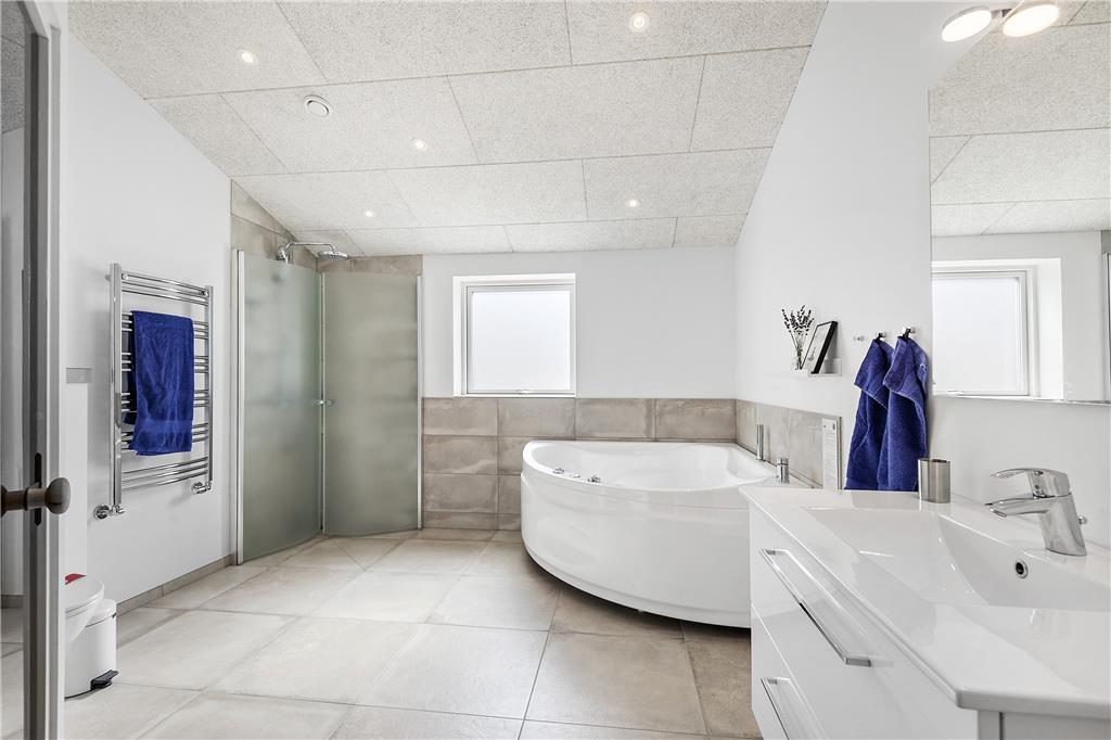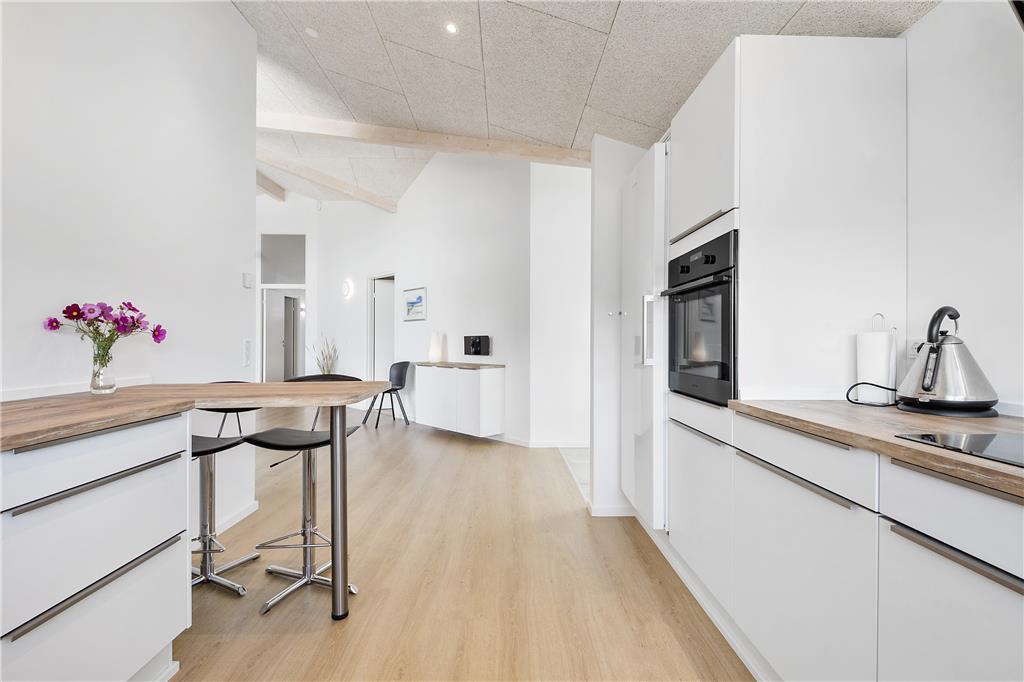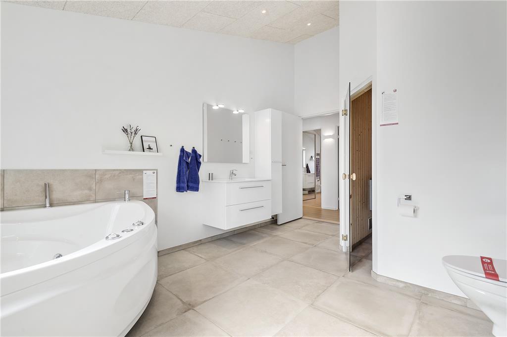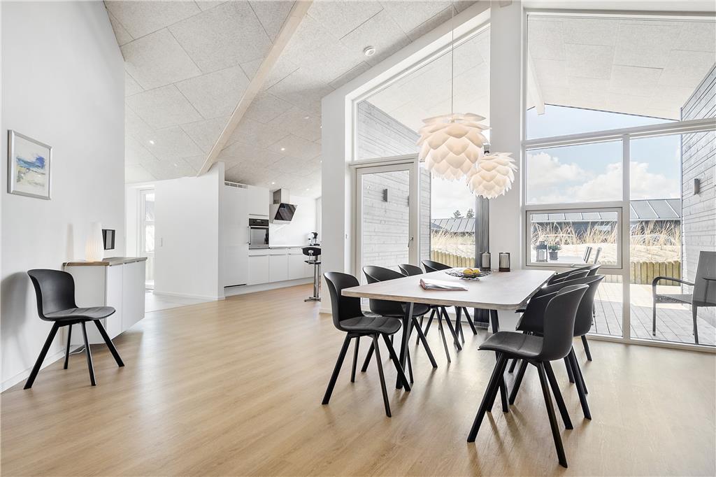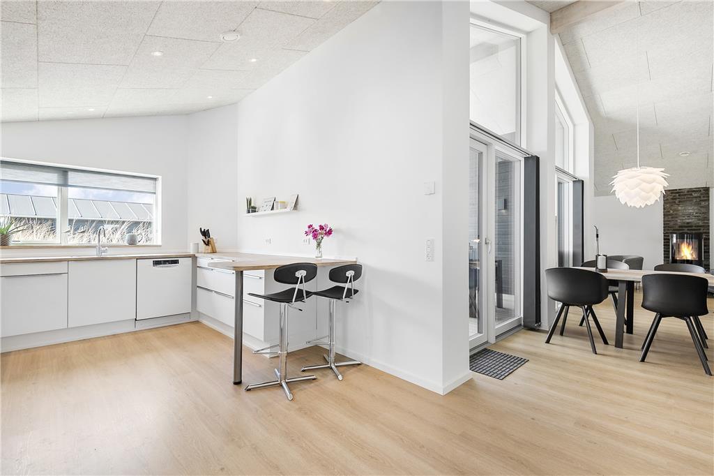 Das 217 m² große Ferienhaus aus dem Jahr 2018 verwöhnt nach allen Regeln der Kunst. Freuen Sie sich also unter anderem auf große, helle Räumlichkeiten, geräuschdämpfende Decken, eine Fußbodenheizung und eine Genvex-Lüftungsanlage. All diese Dinge tragen maßgeblich zur wunderbar behaglichen Wohnatmosphäre bei. Die bereits erwähnte Erdwärmenutzung und die Ganzjahresisolierung machen sich außerdem in einem geringen Energieverbrauch bemerkbar - selbst wenn Sie Ihren Urlaub im Winterhalbjahr verbringen. An kühlen Tagen wird es Sie garantiert unwiderstehlich in das größere der beiden Badezimmer ziehen. Hier locken ein Whirlpool und eine Sauna, die zu traumhaft entspannten Momenten voller Wellnessflair einladen. Zur Wohnfläche zählen darüber hinaus auch vier Schlafzimmer und ein Aktivitätsraum, in dem eine Tischtennisplatte, ein Billardtisch, eine elektronische Dartscheibe und ein großer Fernseher für viel Unterhaltung und Abwechslung sorgen. Das Herzstück des Urlaubsdomizils bildet allerdings der Wohnraum, bei dem es sich um einen großen, richtig schönen und überaus stilvollen Aufenthaltsraum mit einer offenen Küche, einem Kaminofen, einem Esstisch und einer komfortablen Sofagruppe handelt.