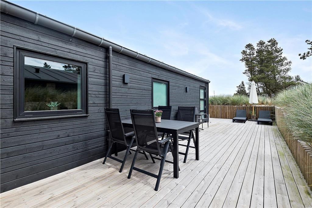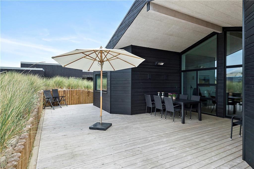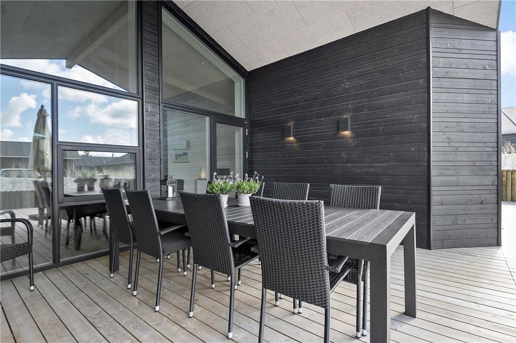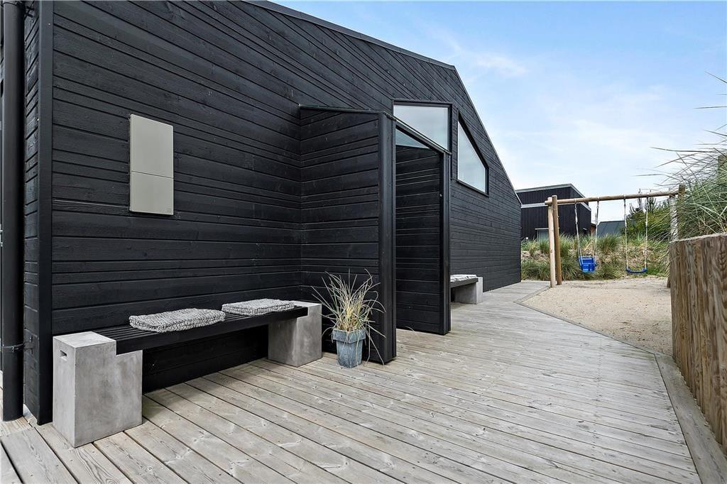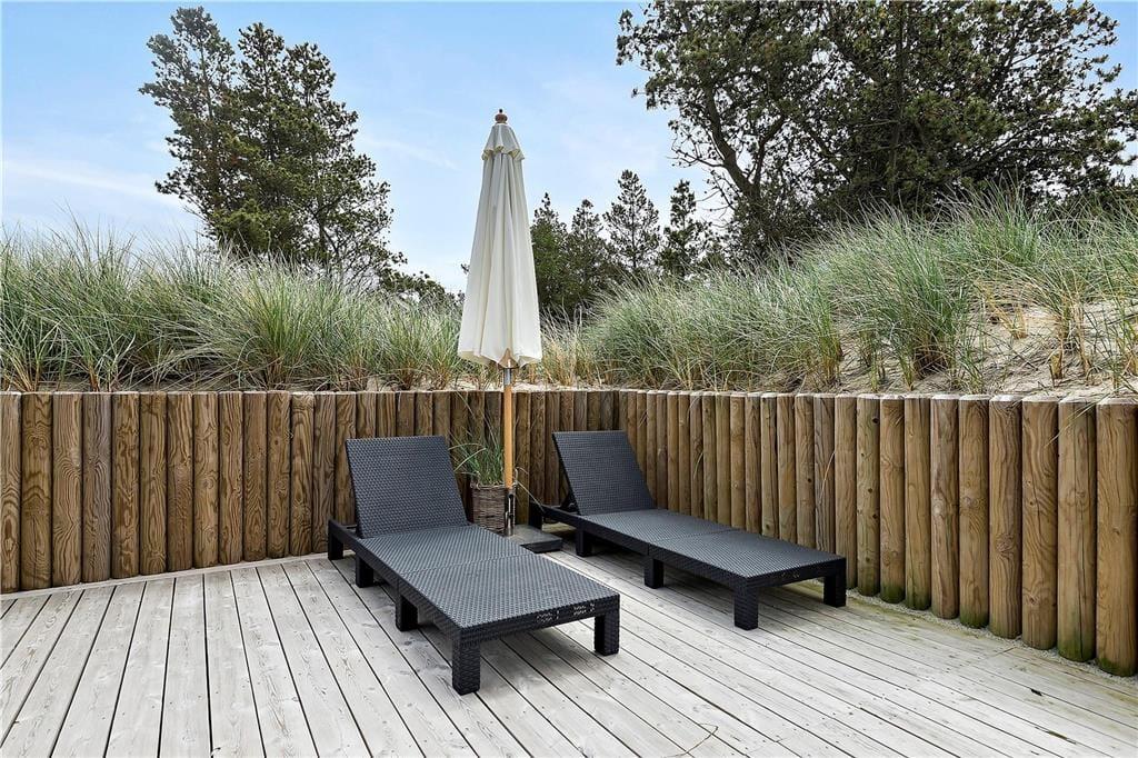 Mindestens genauso schön wie im Hausinneren geht es bei diesem tollen Ferienhaus auch unter freiem Himmel zu. Eine Holzterrasse umgibt das gesamte Haus. Es locken gleich mehrere windgeschützte Aufenthaltsplätze und sonnenverwöhnte Eckchen. Der überdachte Terrassenbereich bietet sich sehr schön als gemütlicher Rückzugsort während der langen, hellen Sommerabende an. Für Verzücken sorgen auch die auf dem Grundstück angelegten "Sanddünen", die mit Strandhafer bewachsen sind und die Außenareale schön abschirmen - inklusive der Außendusche, die Ihnen nach einem langen Tag am Strand den Sand und das Salz des Meeres von der Haut spült. Während Sie sich auf der Terrasse in vollen Zügen erholen und entspannen, werden Ihre Kinder sicherlich vergnügt in der Sandkiste spielen oder schaukeln. Besitzer eines E-Autos dürfen sich auf eine Lademöglichkeit direkt am Haus freuen.