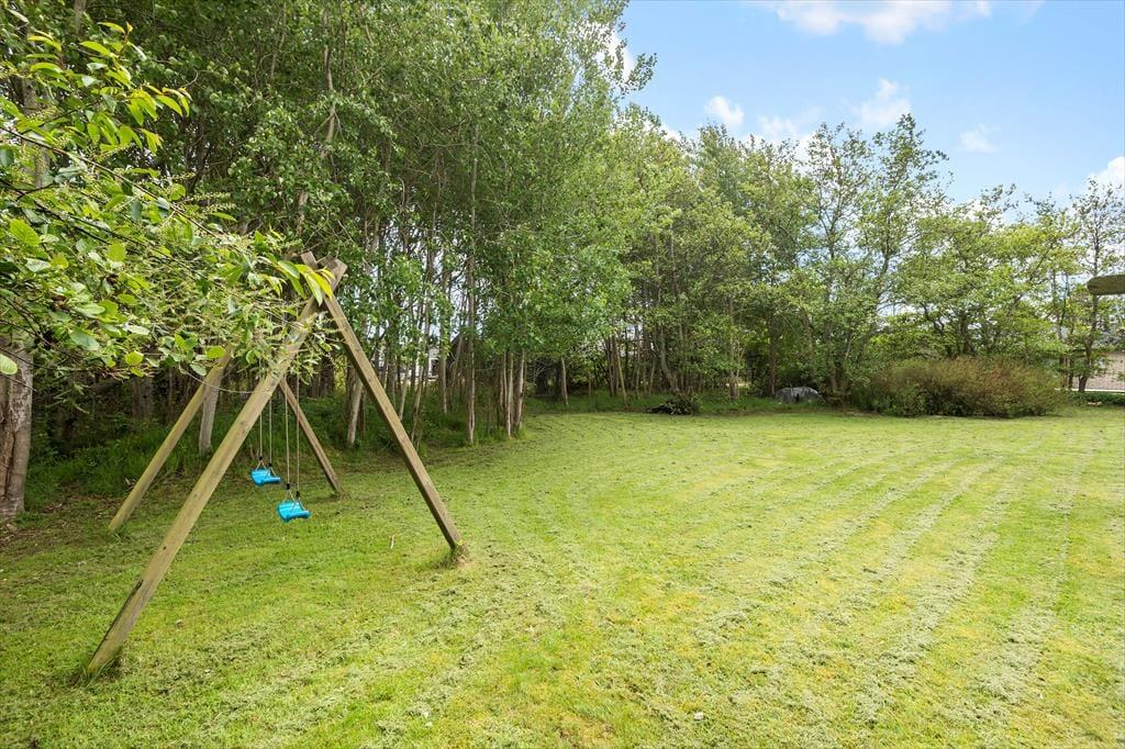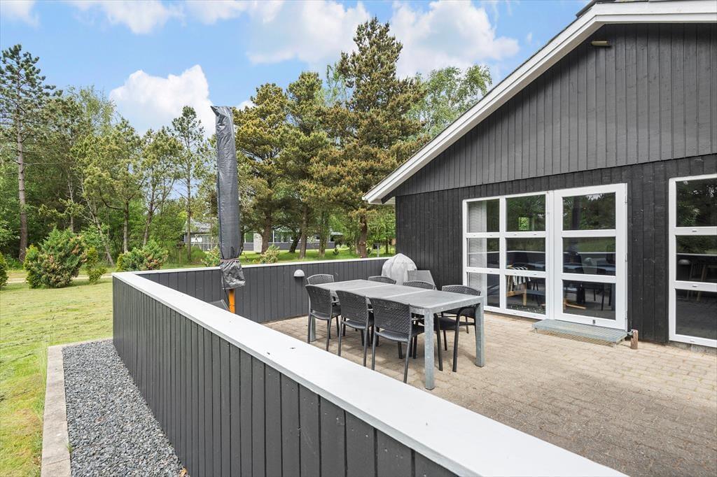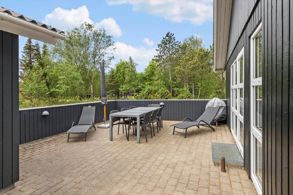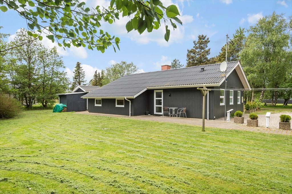 Die Außenanlagen bieten Ihnen viel Platz für ausgiebige Sonnenbäder. Der Garten animiert Ihre Kinder mit Sicherheit zum Spielen und Umhertollen. An der südwestlichen Seite des Urlaubsdomizils erwartet Sie eine schöne, geschlossenen Terrasse, die sich rund um das Haus bis zur Südostseite erstreckt. Das Ferienhaus ist von einer Grünfläche und hohen Bäumen umgeben. Dieses ausgesprochen schöne Grundstück eignet sich hervorragend für spielende Kinder - auch ohne die ständige Aufsicht der Erwachsenen.