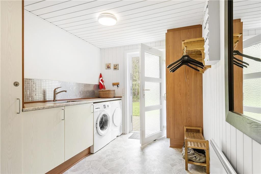 Dieses Ferienhaus bietet Ihnen alles, was Sie für einen gelungenen Urlaub benötigen. Der große Küchen- und Wohnbereich bietet den bis zu sechs mitreisenden Urlaubsgästen ausreichend Bewegungsfreiheit. In den schönen Wohnbereich ist der Essplatz integriert. Der hier ebenfalls platzierte Kamin sorgt mit seinem knisternden, wärmenden Feuer für ein Maximum an Gemütlichkeit. Vom Wohnraum genießen Sie zudem direkten Zugang auf die geschlossene Terrasse. Die Schlafplätze verteilen sich auf insgesamt drei Doppelzimmer mit Schrankfläche. Ihnen stehen zwei Bäder mit Dusche zur Verfügung. Eines der Badezimmer sorgt mit seinem Whirlpool und der Sauna für einen Hauch von Wellnessstimmung. Im Eingangsbereich stehen für Sie ein Waschbecken, eine Waschmaschine und ein Wäschetrockner bereit.