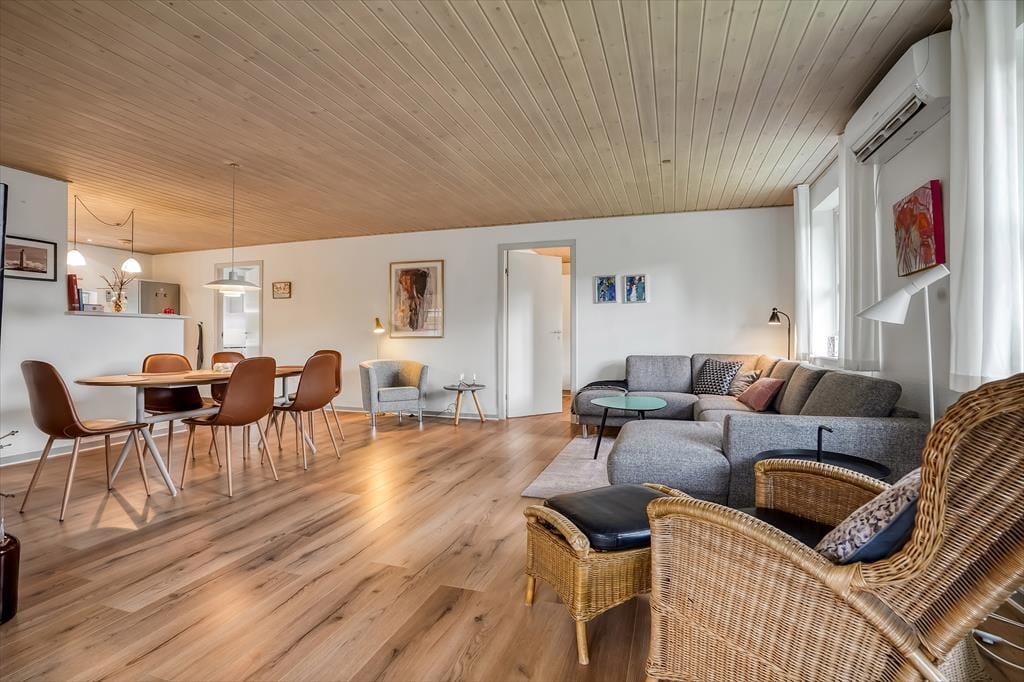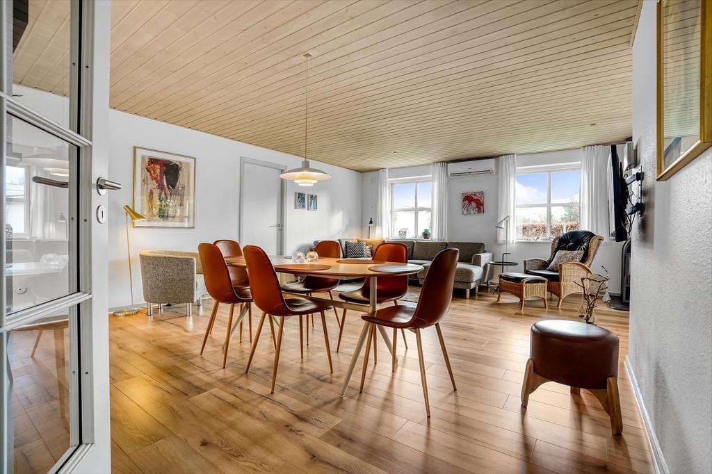 Sie wohnen nahezu am Ende des kleinen, geschlossenen Weges mit dem Namen Tykby. Da Sie lediglich 350 Meter von der Bäckerei des Urlaubsortes entfernt wohnen, können Sie den Morgen mit einem Becher Kaffee und frischen Brötchen starten. Auch der nächstgelegene Supermarkt liegt nicht viel weiter entfernt. Beste Shoppingmöglichkeiten, Restaurants und Cafés gibt es in der ebenfalls schnell zu Fuß erreichbaren Hauptstraße des Ortes. Falls Sie lieber einen Tag am Hvidbjerg Strand bevorzugen, müssen Sie lediglich gut 500 Meter zurücklegen. Dieser Strand besticht mit kinderfreundlichen Badebedingungen, weißem Sand, einer Badebrücke und unglaublich viel Platz zum Laufen, Spielen und Sonnen. Zu den Attraktionen des Ortes zählen der Blåvand Zoo und das grandiose, moderne Tirpitz-Museum. Unbedingt empfehlenswert sind zudem Spaziergänge, Radtouren und Wanderungen in der prachtvollen Natur, die durch Dünenplantagen und wunderschöne Heideflächen geprägt ist.