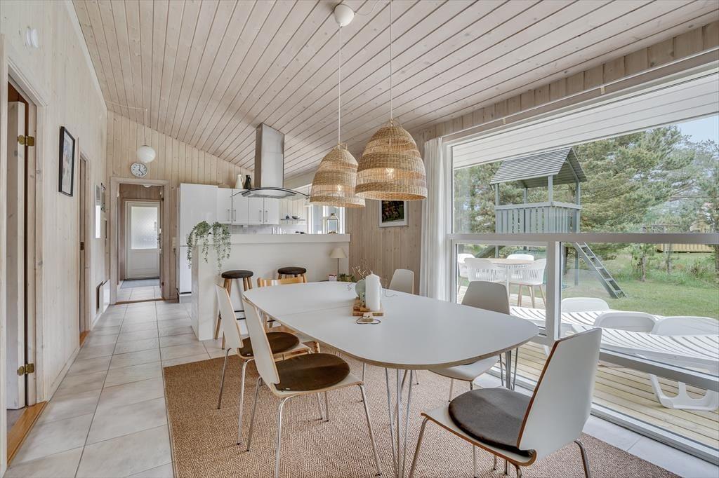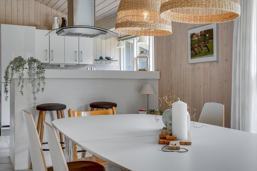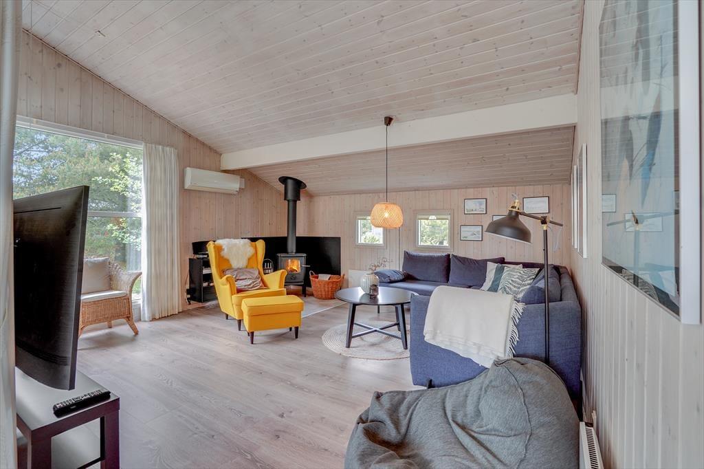 Das 100 m² große Ferienhaus wurde gelungen renoviert, sodass die Einrichtung hell und die Atmosphäre einladend ist. Der schöne Wohnbereich des Hauses lädt zu vielen gemütlichen Stunden am Esstisch und in der Sofaecke nahe dem Kaminofen ein, und in der offenen, gut ausgestatteten Küche habt ihr viel Platz zum Kochen. In den drei Schlafzimmern könnt ihr euch auf eine erholsame Nachtruhe in den komfortablen Betten freuen, und wenn ihr bereit seid aufzustehen, könnt ihr euch im großen Badezimmer mit einer Dusche erfrischen. Wenn euch eher nach Wellness und Entspannung ist, könnt ihr die Sauna im Badezimmer nutzen.