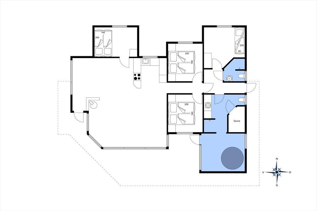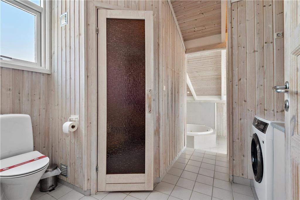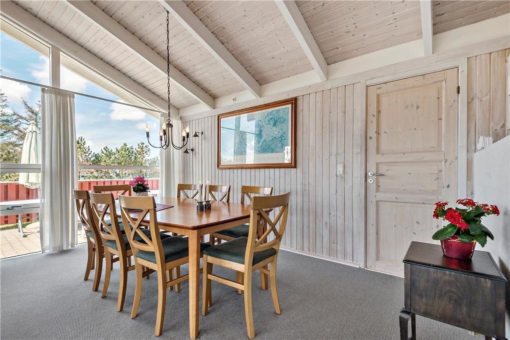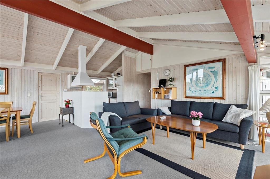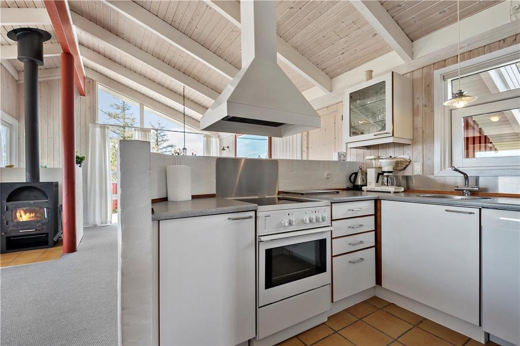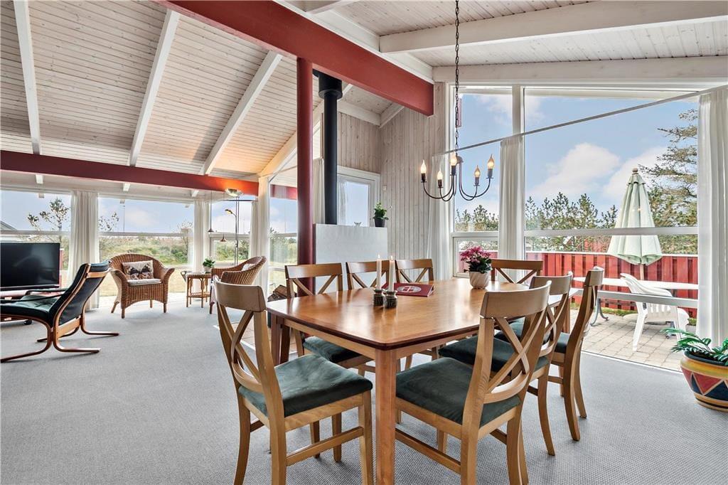 Dieses schöne und gepflegte Ferienhaus überzeugt mit einer 114 m² umfassenden Wohnfläche und einer hellen und einladenden Wohnatmosphäre. Die großen Fenster im Wohnraum sorgen für einen wunderbaren Tageslichteinfall und die hohen Decken tragen maßgeblich zum angenehmen Wohnambiente bei. An kühlen Abenden, an denen Sie es sich in der Sofaabteilung mit einem spannenden Film gemütlich machen möchten, verleiht der romantisch knisternde Kaminofen dem Wohnraum ein Maximum an echter dänischer Ferienhausgemütlichkeit und kuscheliger Wärme. Gleiches gilt selbstverständlich auch, wenn Sie sich in geselliger Runde rund um den attraktiven Esstisch niederlassen. Selbst bei der Zubereitung der Mahlzeiten genießen Sie die angenehme Wärme des Kaminofens, da die Küche harmonisch und offen in den Wohnbereich integriert ist. Nach einem langen Spaziergang an einem windigen Frühjahrs- oder Herbsttag locken anschließend der tolle Whirlpool und die Sauna, die beide im größeren der beiden Badezimmer untergebracht sind. Allabendlich können Sie sich in vier Schlafräumen zur Ruhe begeben, die Ihnen insgesamt acht gute Schlafplätze bieten.
