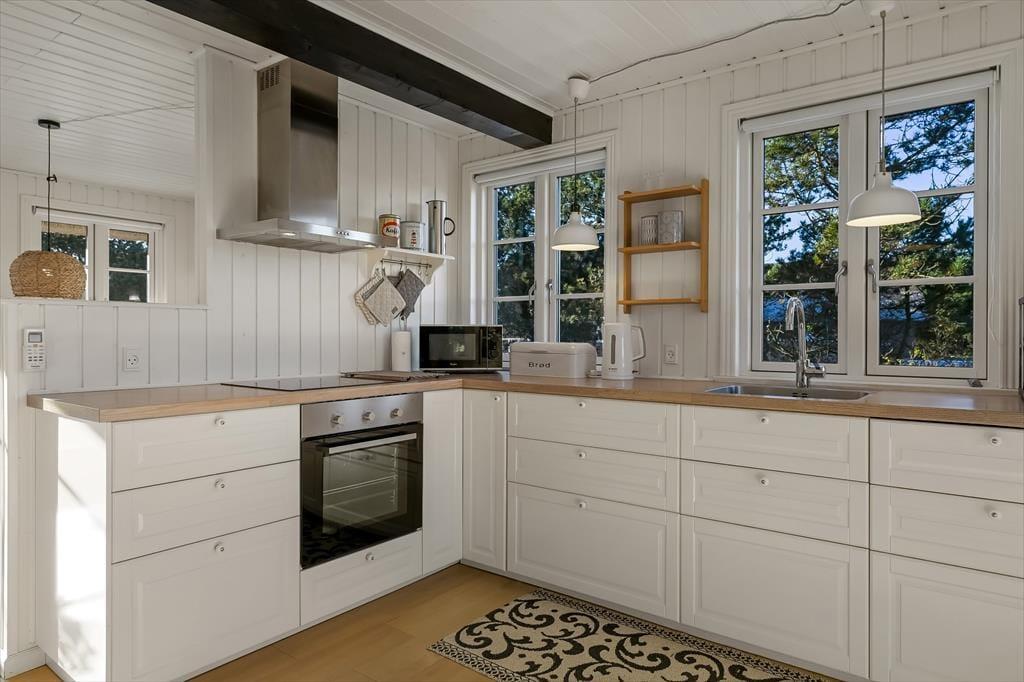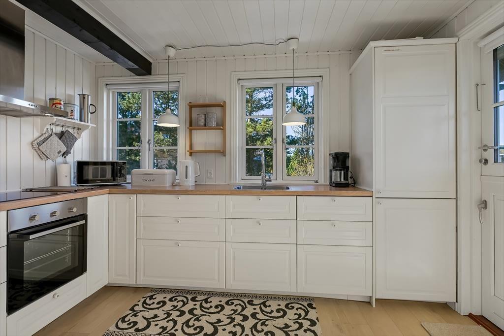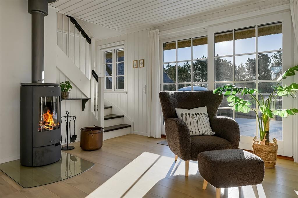 Das 120 m² große Ferienhaus wird seit jeher gehegt und gepflegt, sodass sich das Reetdach, die Holzfassade und selbstverständlich auch das Hausinnere in einem sehr guten, ansprechenden Zustand präsentieren. Die Räumlichkeiten bestechen mit einer Extraportion an Gemütlichkeit. Die hellen Räume sind allesamt mit komfortablen Möbeln und einer guten Beleuchtung ausgestattet. Zu den ganz besonders reizenden Details zählen unter anderem die Schlafnische im Wohnraum des Obergeschosses und der behaglich knisternde Kaminofen im Aufenthaltsraum des Erdgeschosses. Beide Räume bieten Ihnen viel Platz, um gemeinsam gemütliche und entspannte Stunden zu verleben. Wenn es für Sie noch ein wenig behaglicher und entspannter sein darf, legen Sie doch einfach eine längere Pause im Badezimmer ein, in dem ein Whirlpool zu traumhaft erholsamen Momenten voller Wellnessflair einlädt. Die Wohnfläche dieses attraktiven Urlaubsdomizils umfasst darüber hinaus auch drei gute Schlafzimmer, die allesamt mit einem Doppelbett eingerichtet sind.